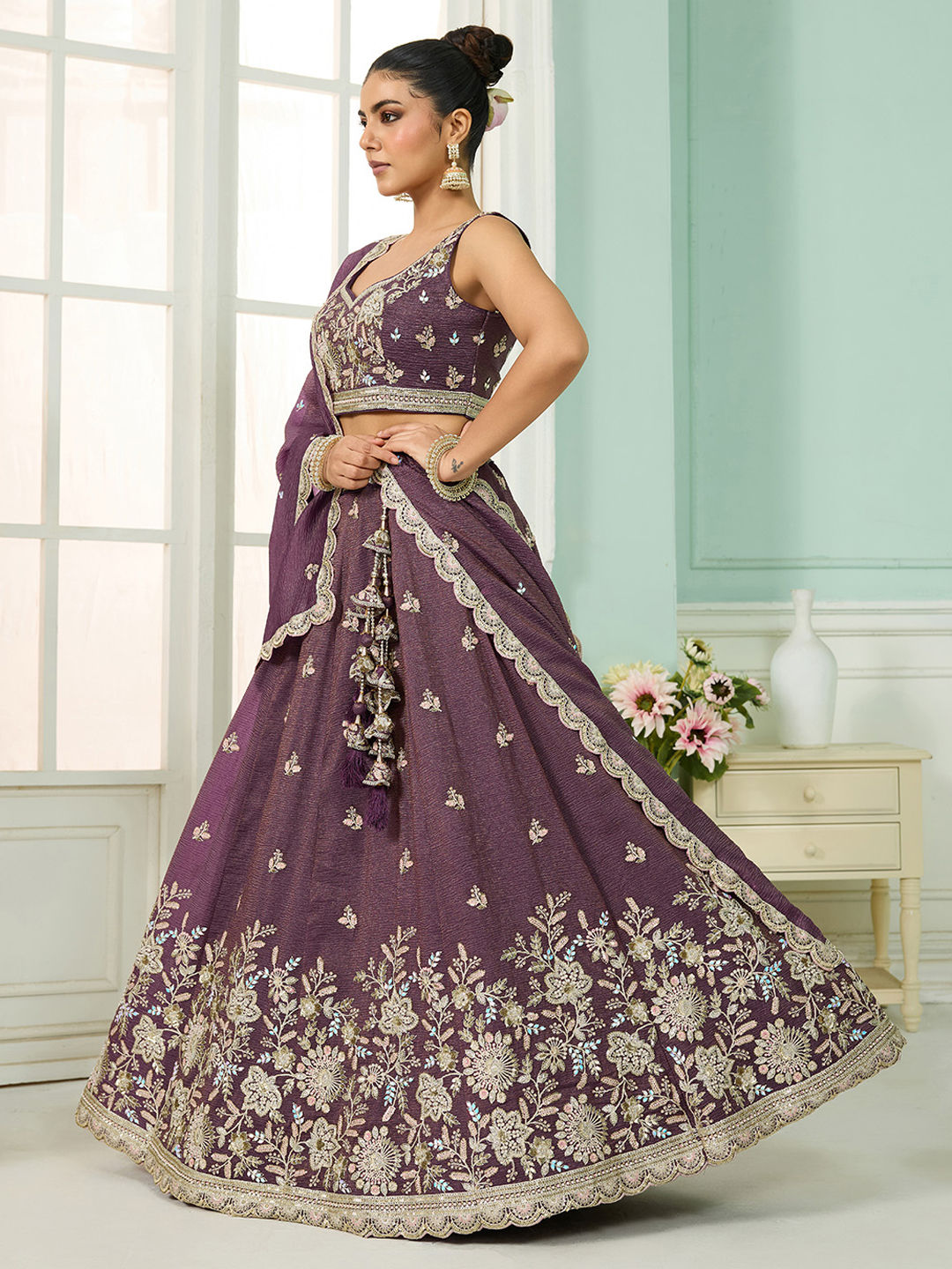 Tissue Wedding Lehenga in Purple and Violet with Thread work