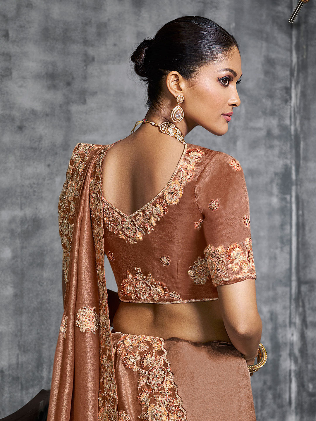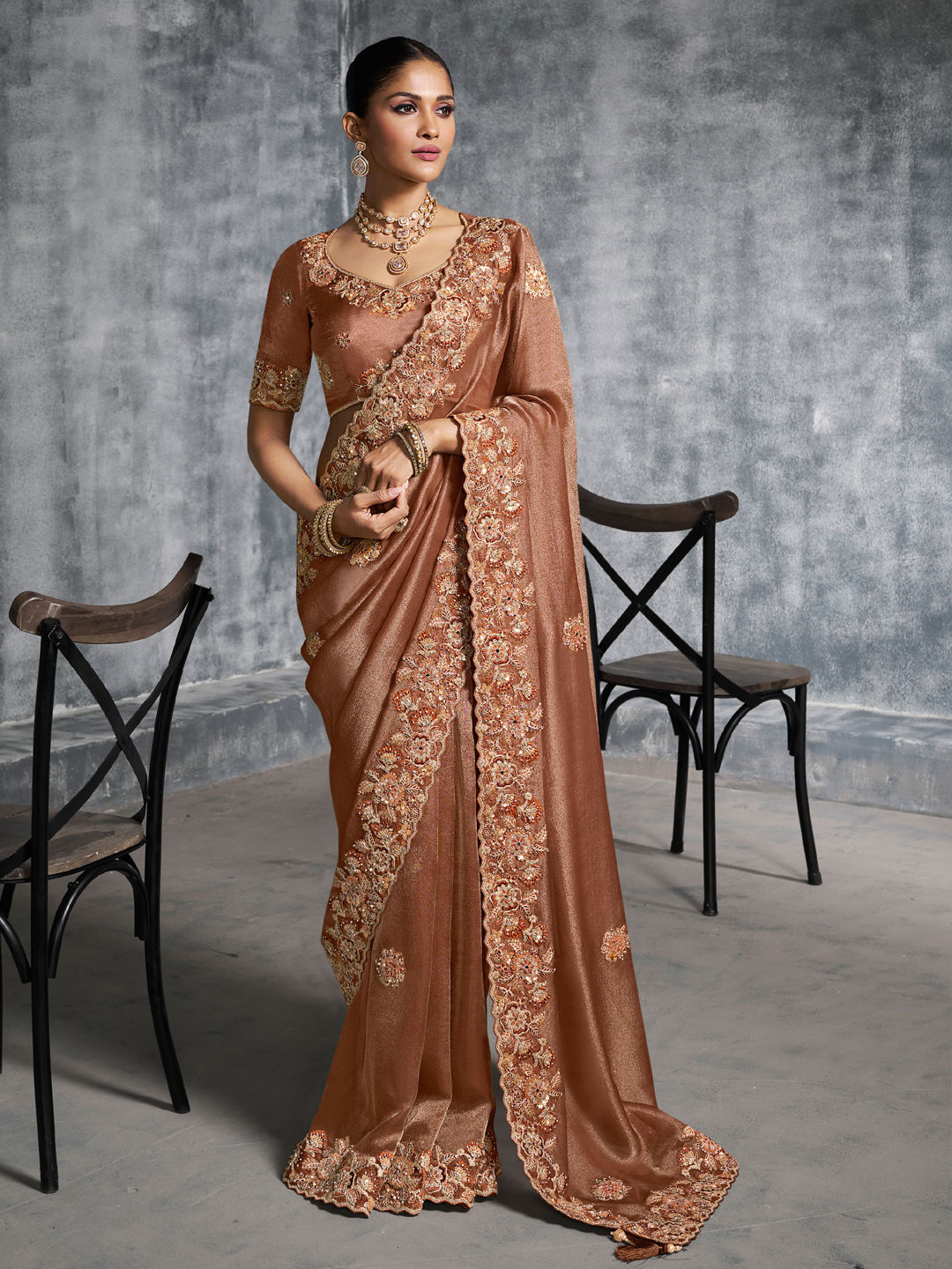 Tissue Traditional Saree in Beige and Brown with Sequence work