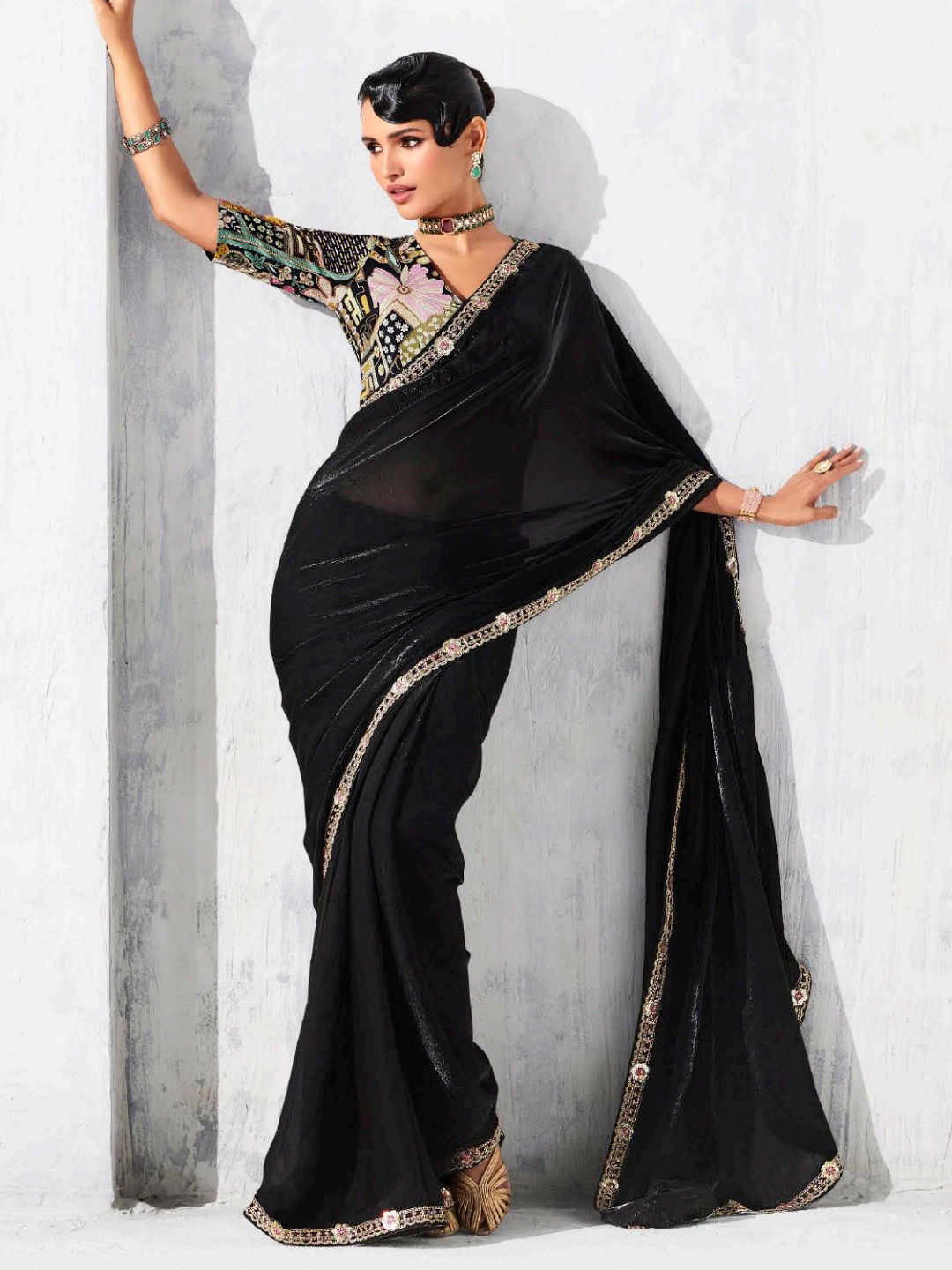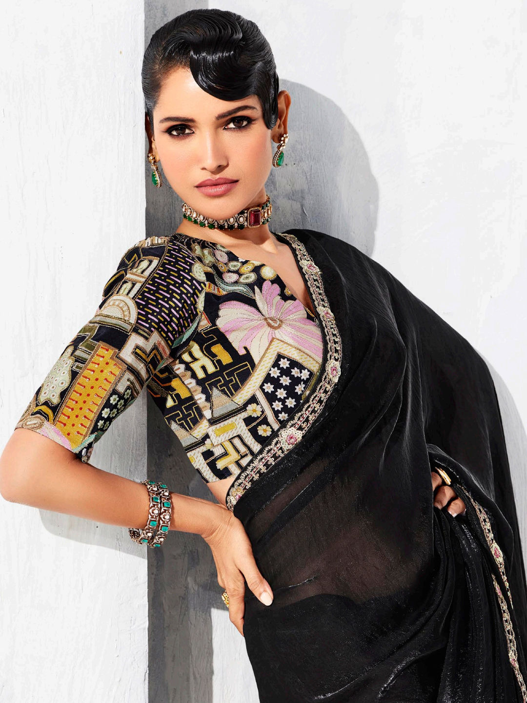 Black and Grey color Saree in Tissue fabric with Embroidered, Sequence, Thread, Zari work