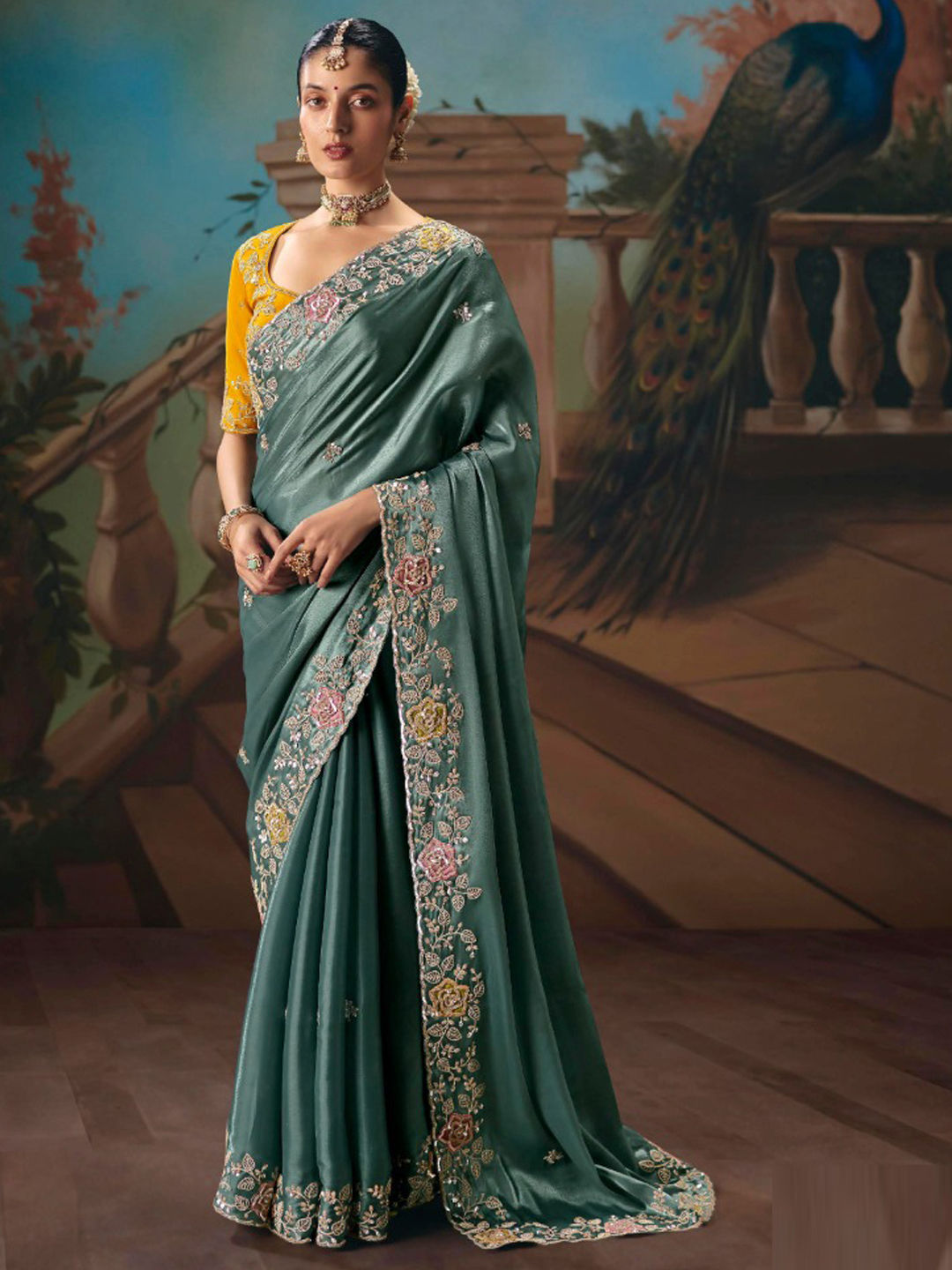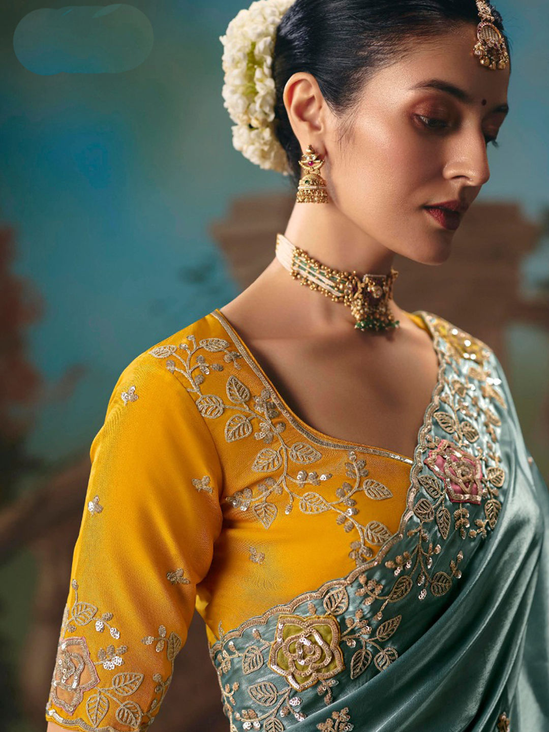 Blue color Saree in Tissue fabric with Border, Embroidered, Sequence work