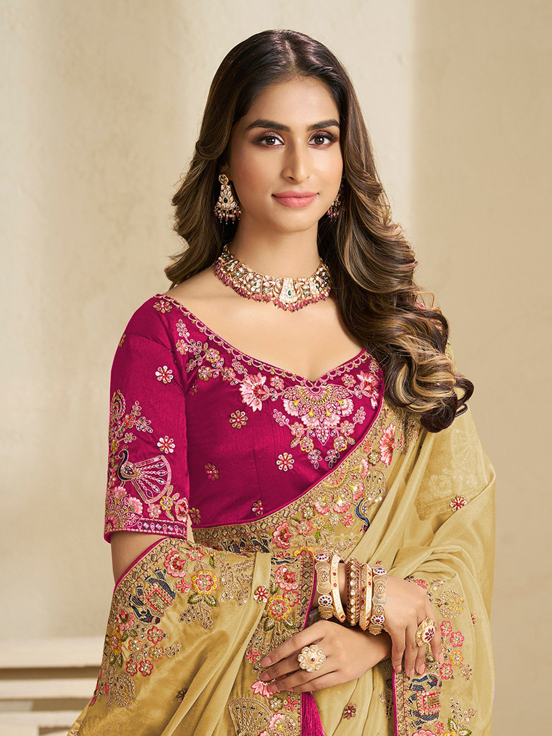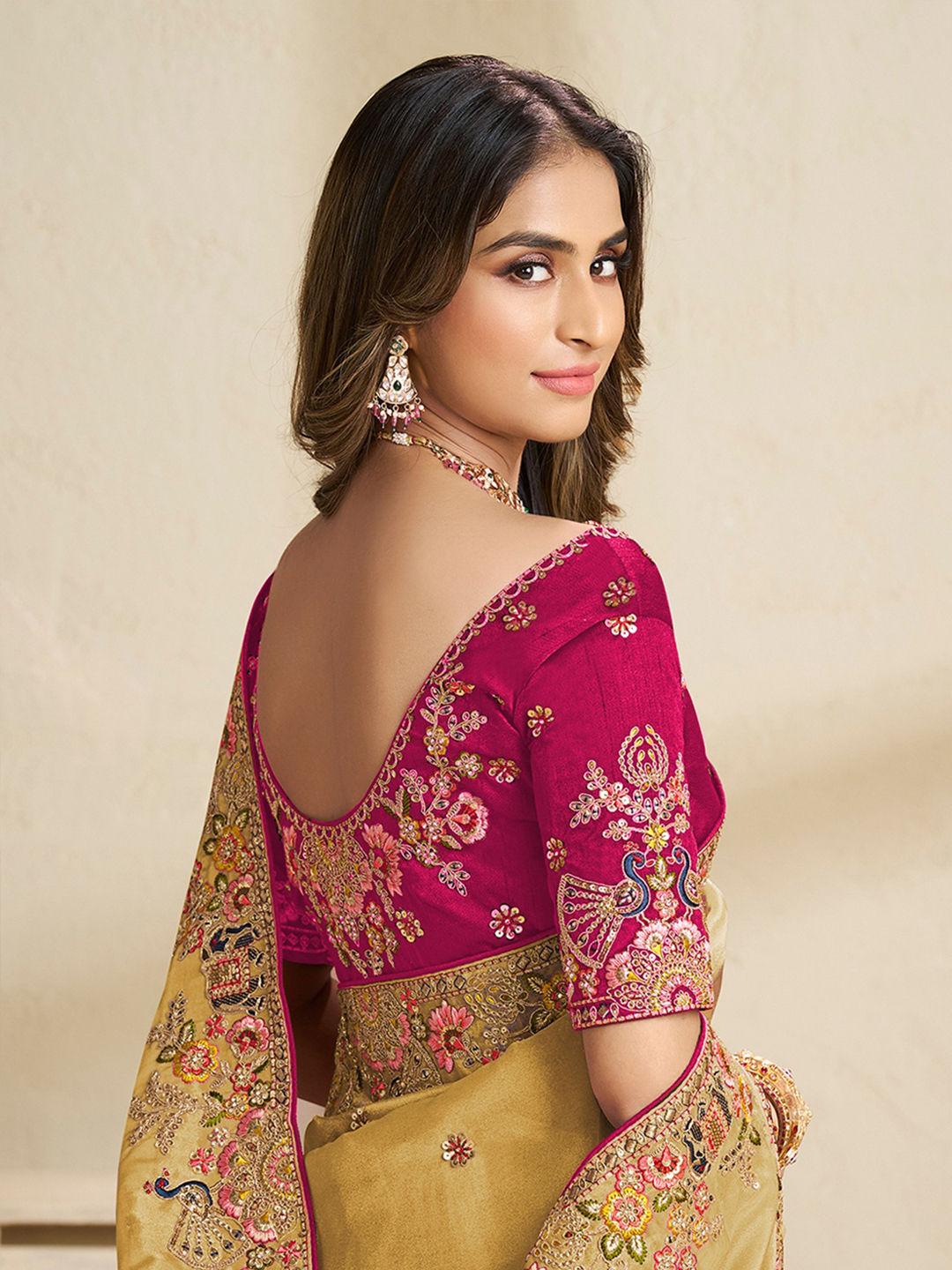Tissue Bridal Saree in Pink and Majenta with Embroidered work