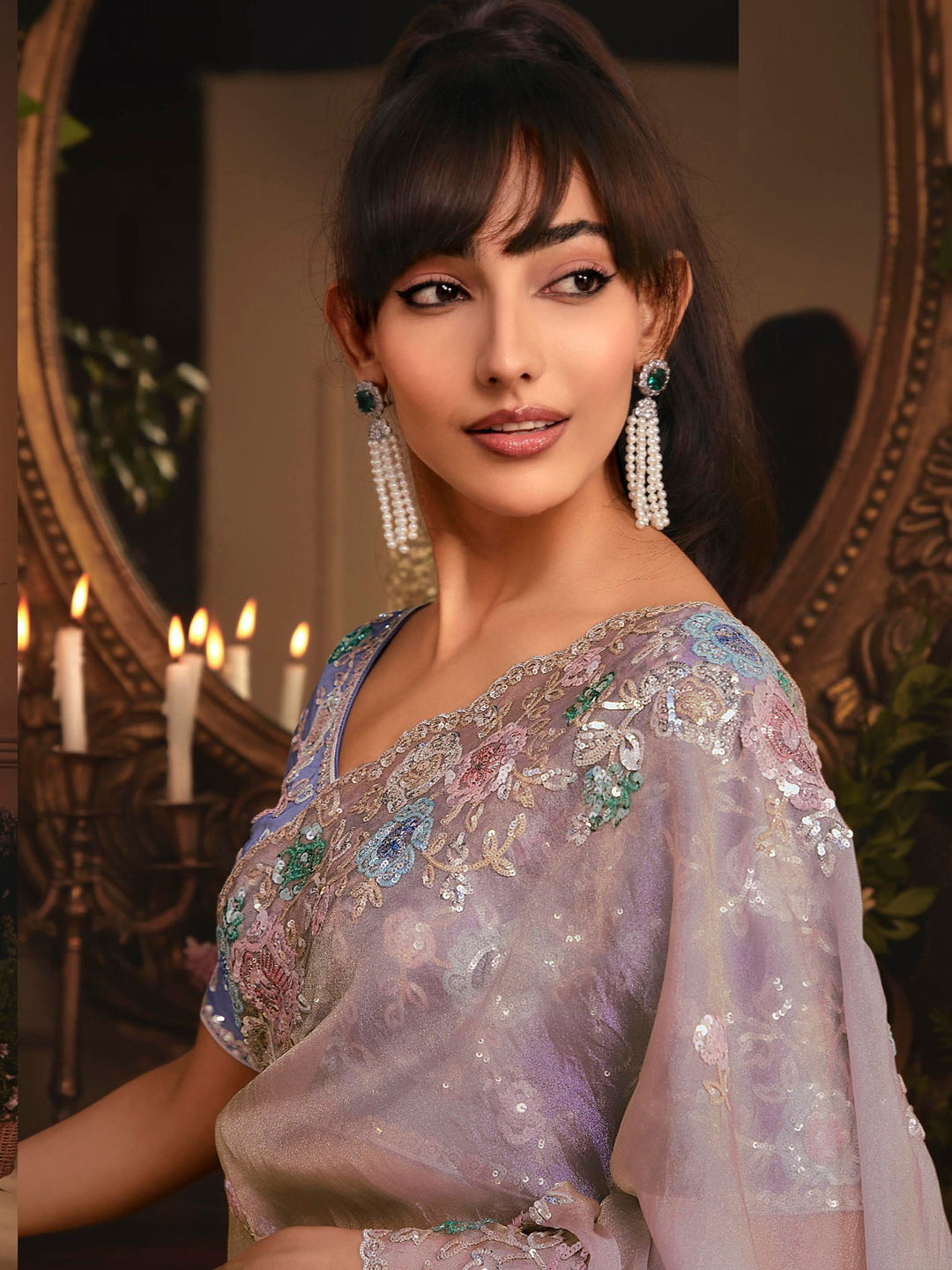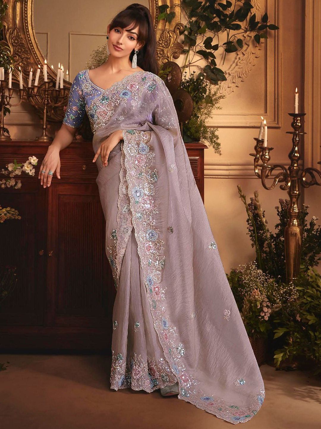 Tissue Wedding Saree in Purple and Violet with Sequence work