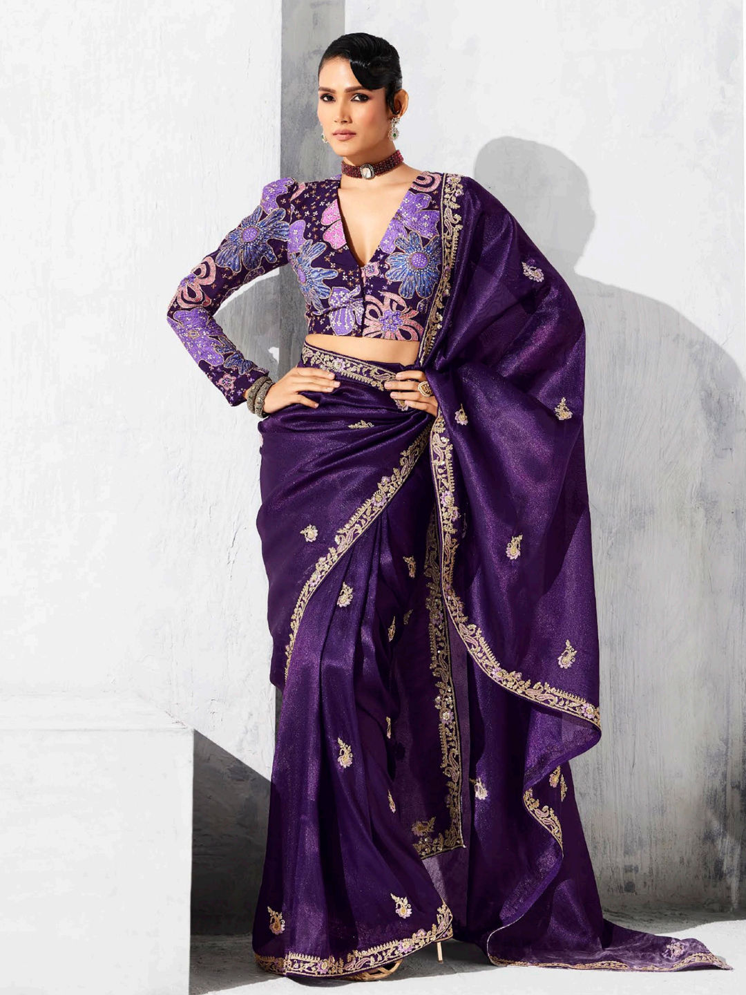 in Purple and Violet with Embroidered work