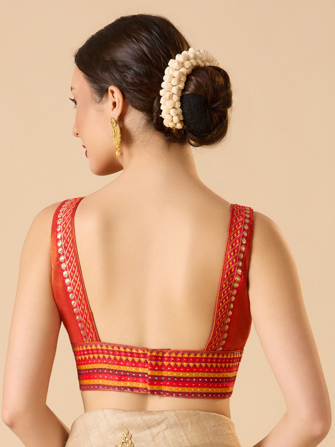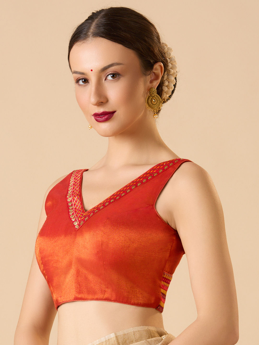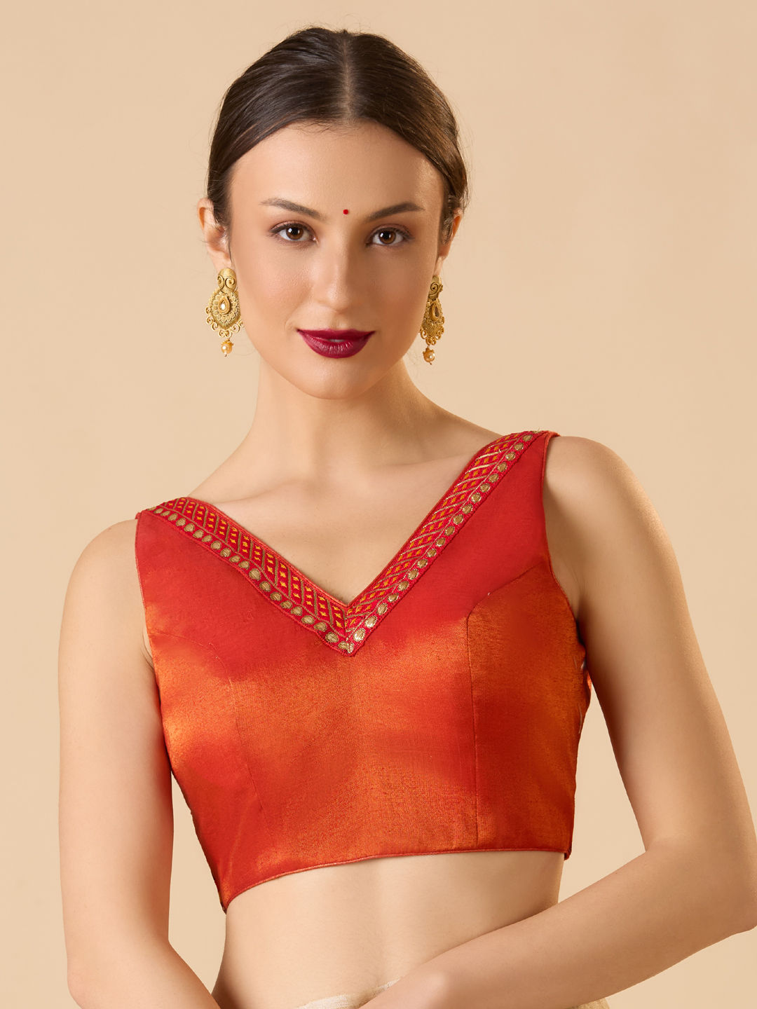 Red and Maroon color Blouse in Tissue fabric with Sequence work