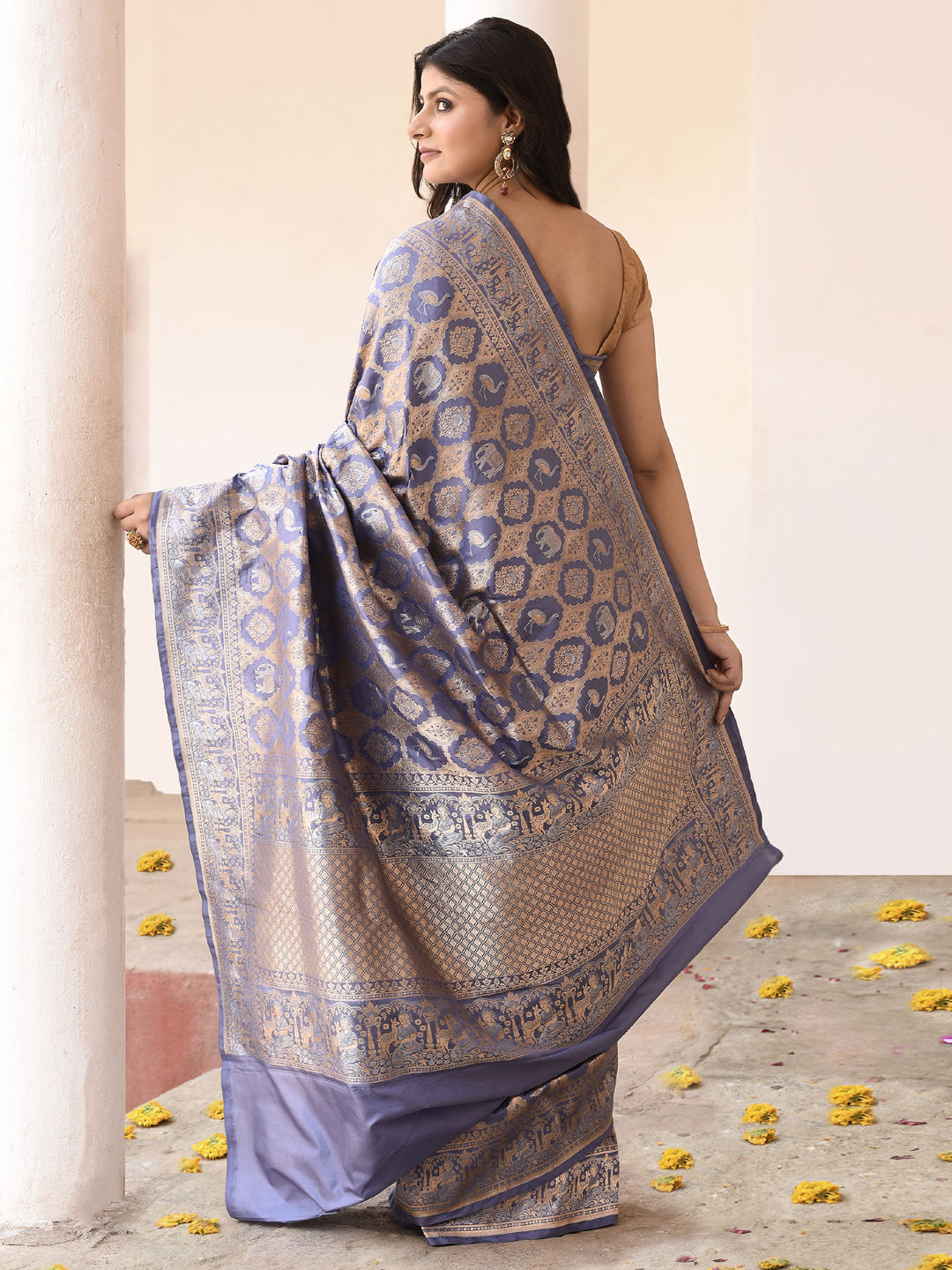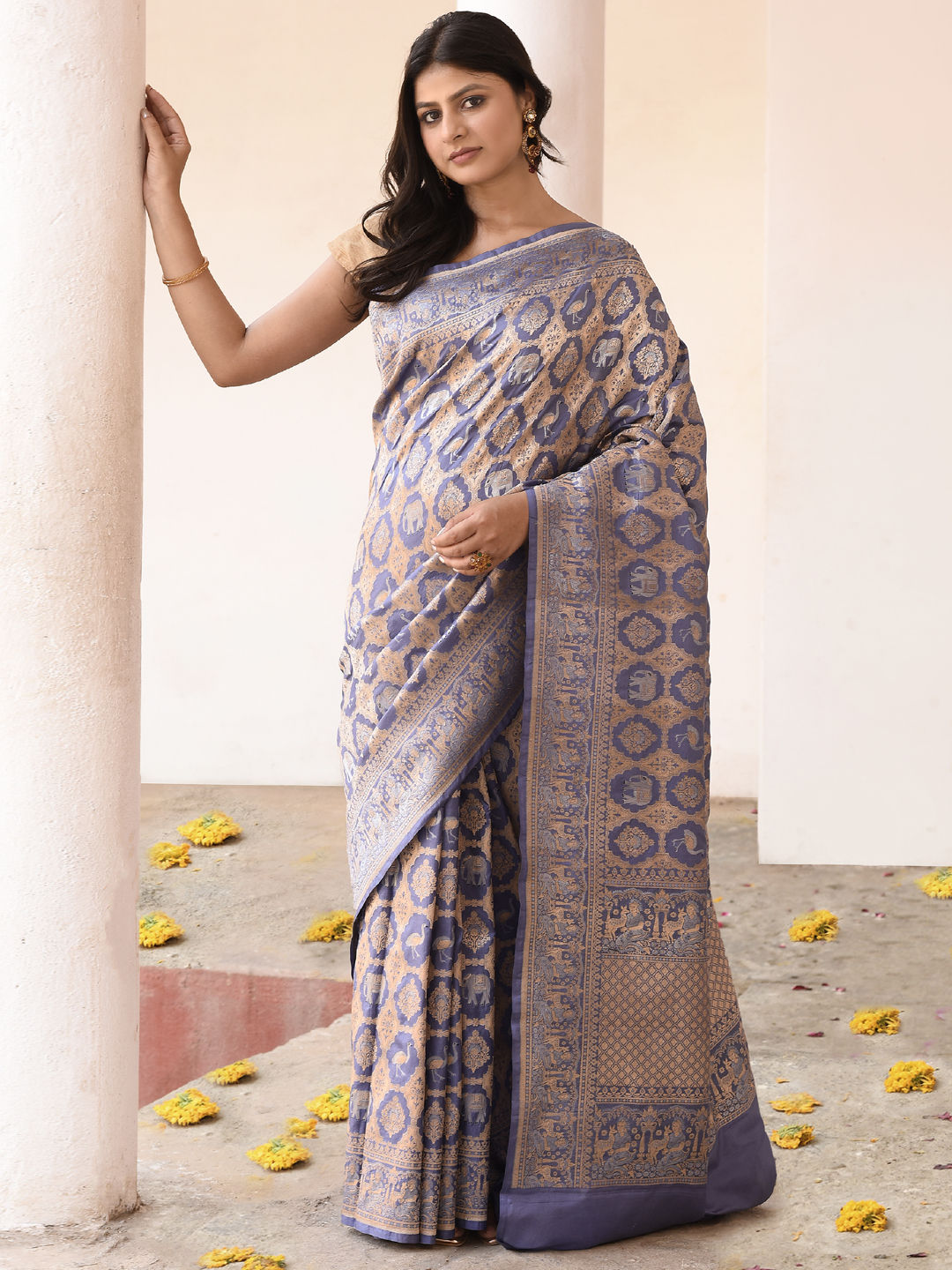 Tissue Traditional Saree in Gold with Zari work