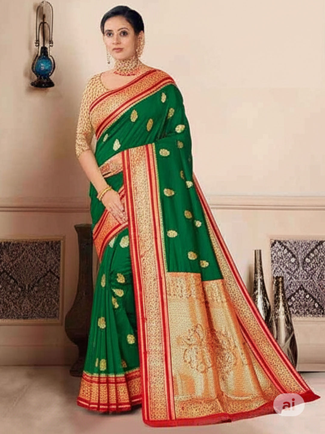 Green color Saree in Tissue fabric with Weaving, Zari work