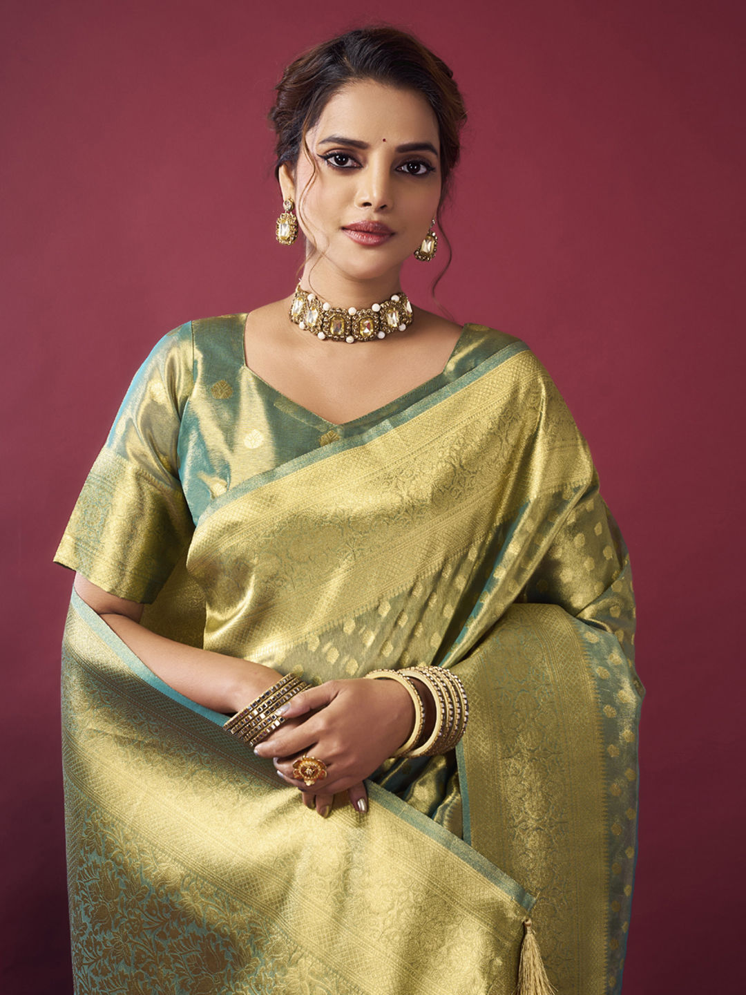 Tissue Traditional Saree in Beige and Brown with Weaving work