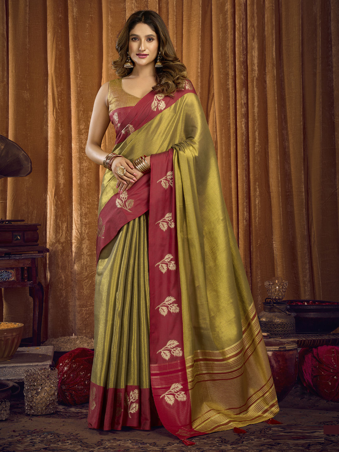 Tissue Traditional Saree in Beige and Brown with Weaving work