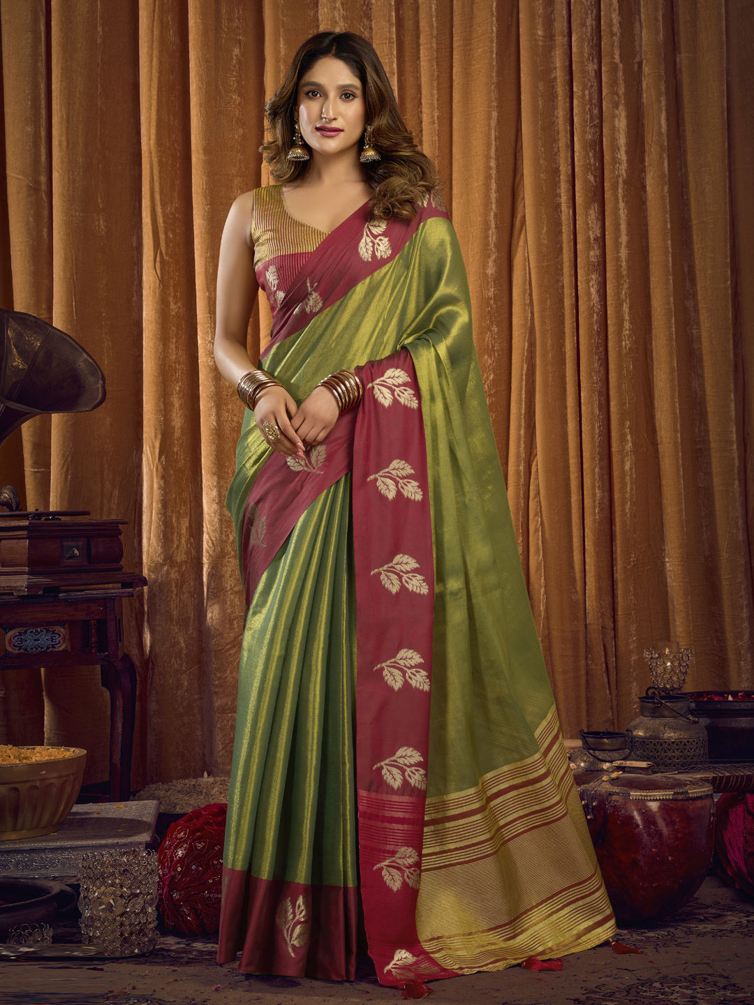 Tissue Traditional Saree in Beige and Brown with Weaving work