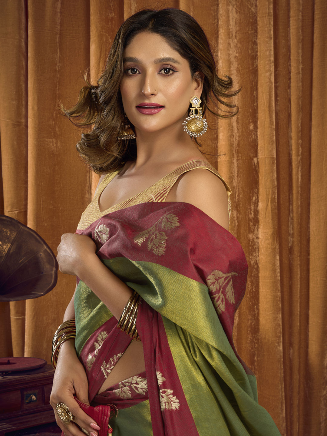 Tissue Reception Saree in Pink and Majenta with Weaving work
