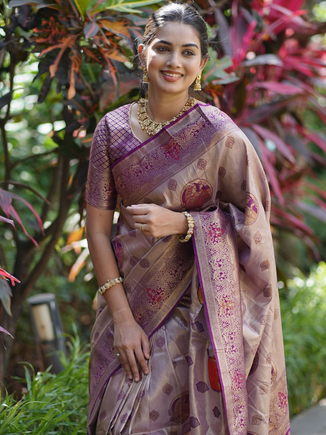 Tissue Wedding Saree in Beige and Brown with Zari work