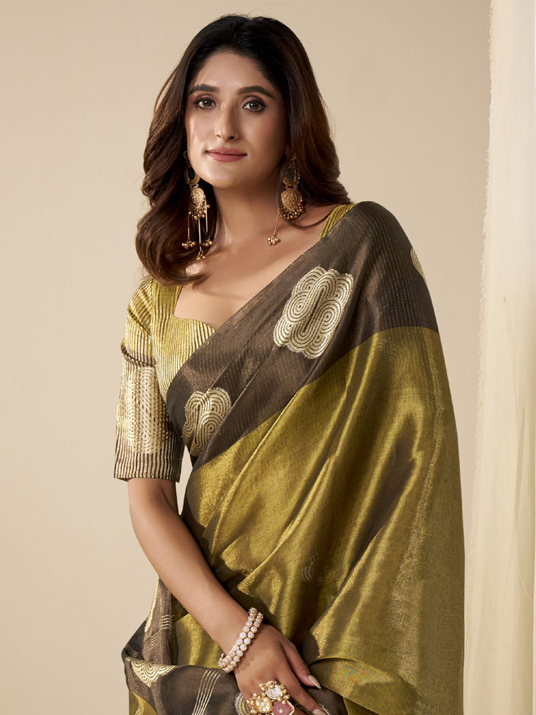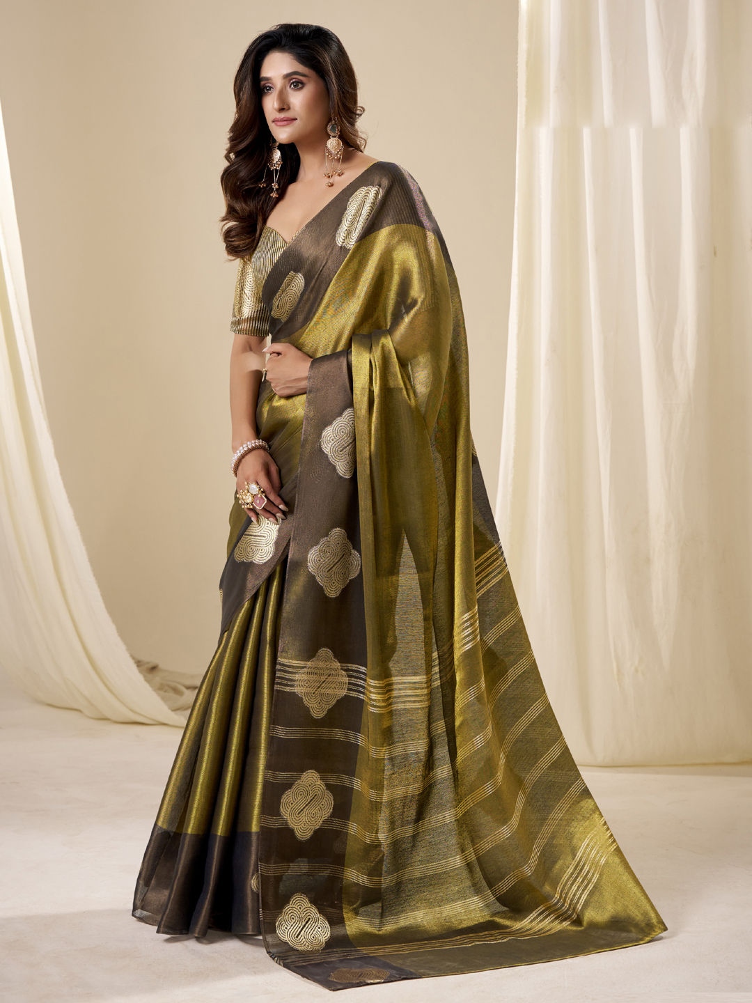 Tissue Traditional Saree in Beige and Brown with Weaving work