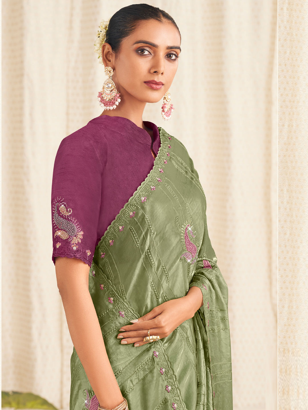 in Green with Lace work