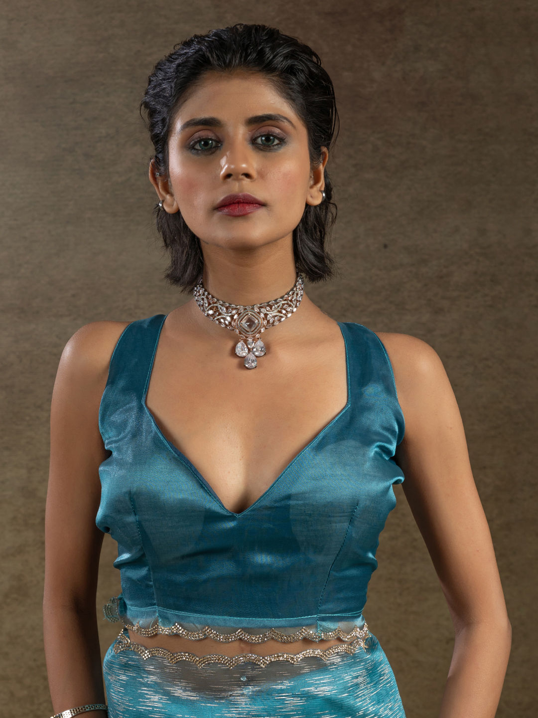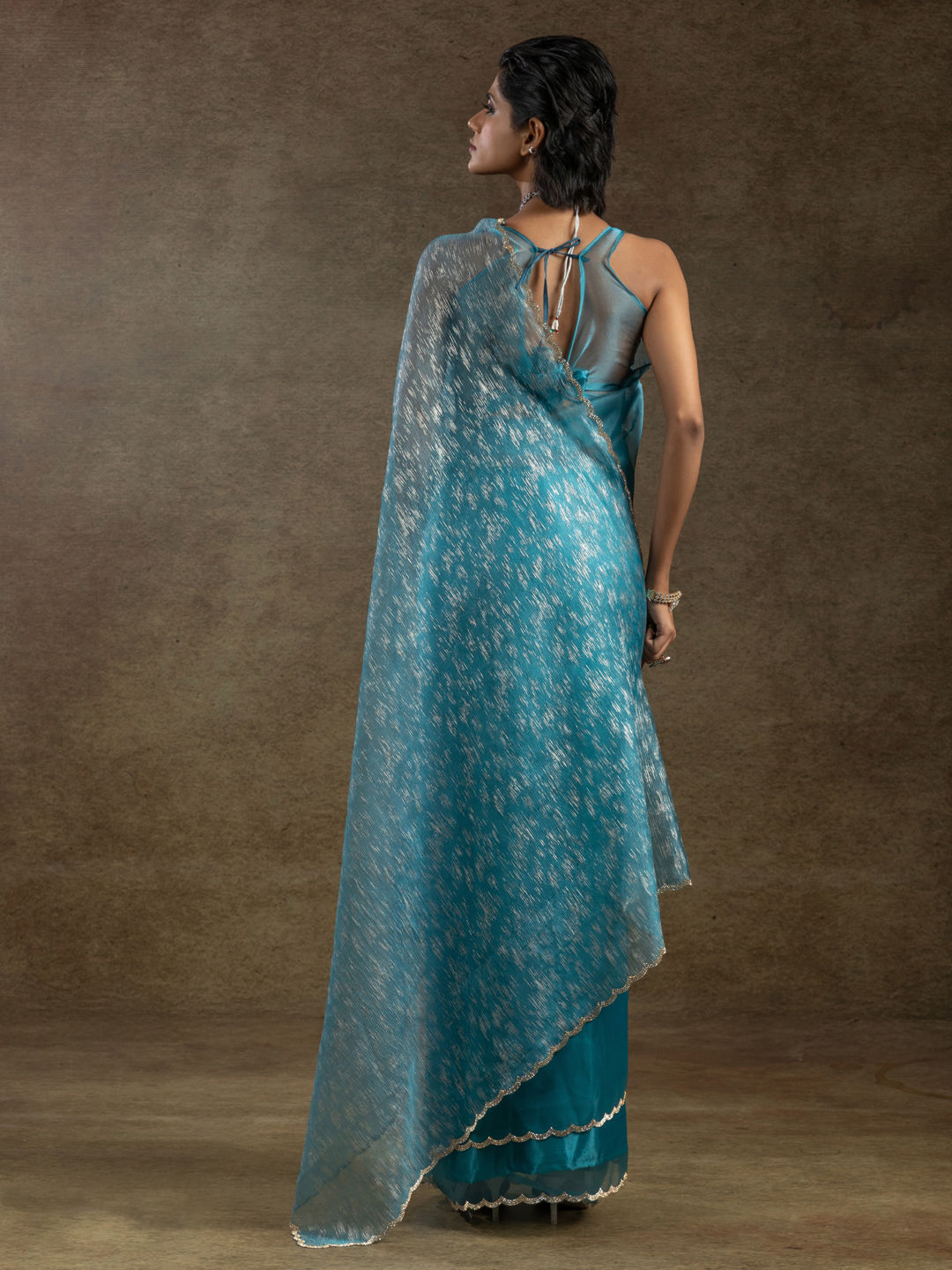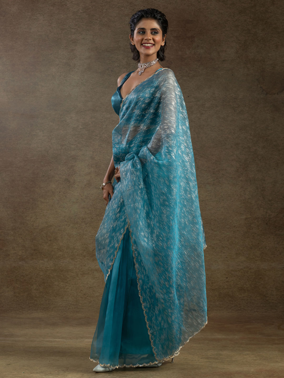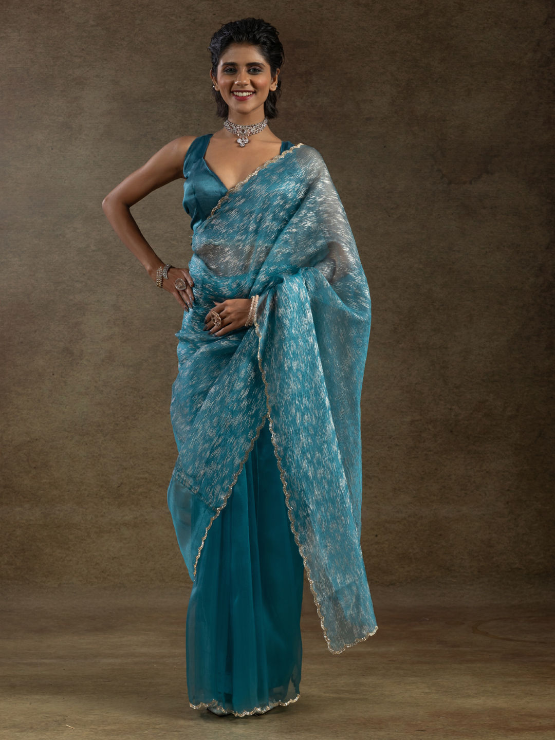 Blue color Readymade Saree in Tissue fabric with Stone work
