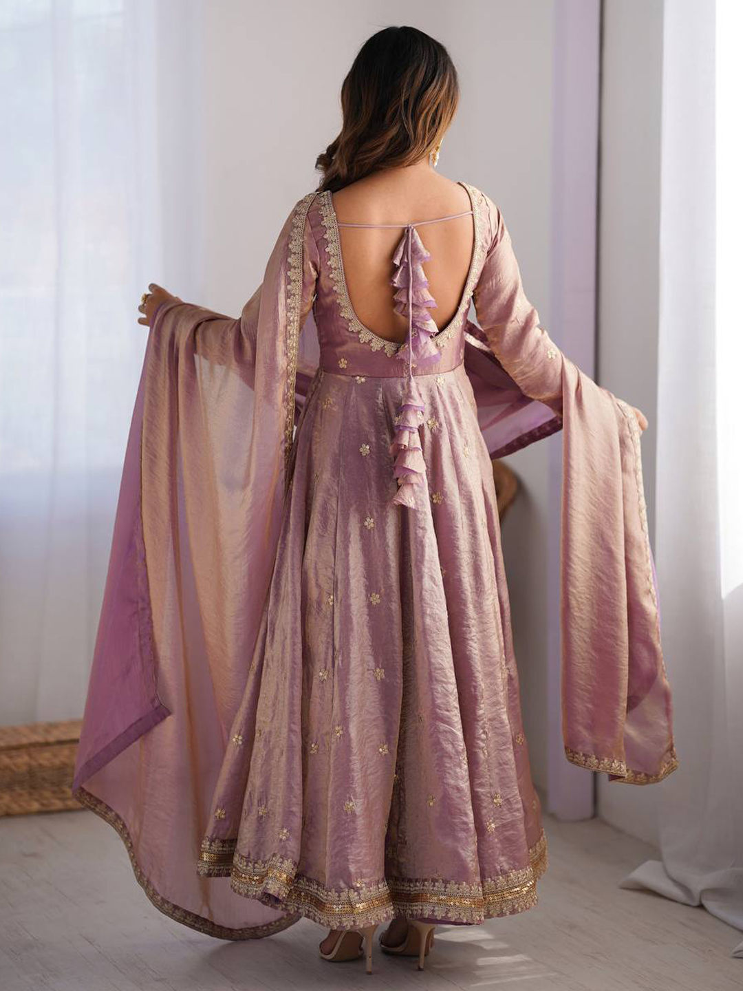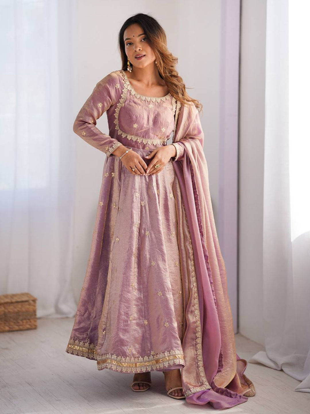 Pink and Majenta color Salwar Kameez in Tissue fabric with Embroidered, Sequence, Thread, Zari work