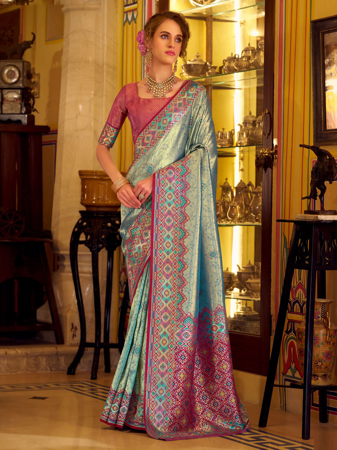 Tissue Traditional Saree in Pink and Majenta with Printed work