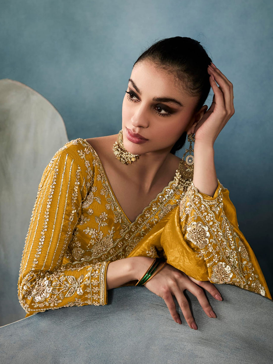 in Blue with Embroidered work