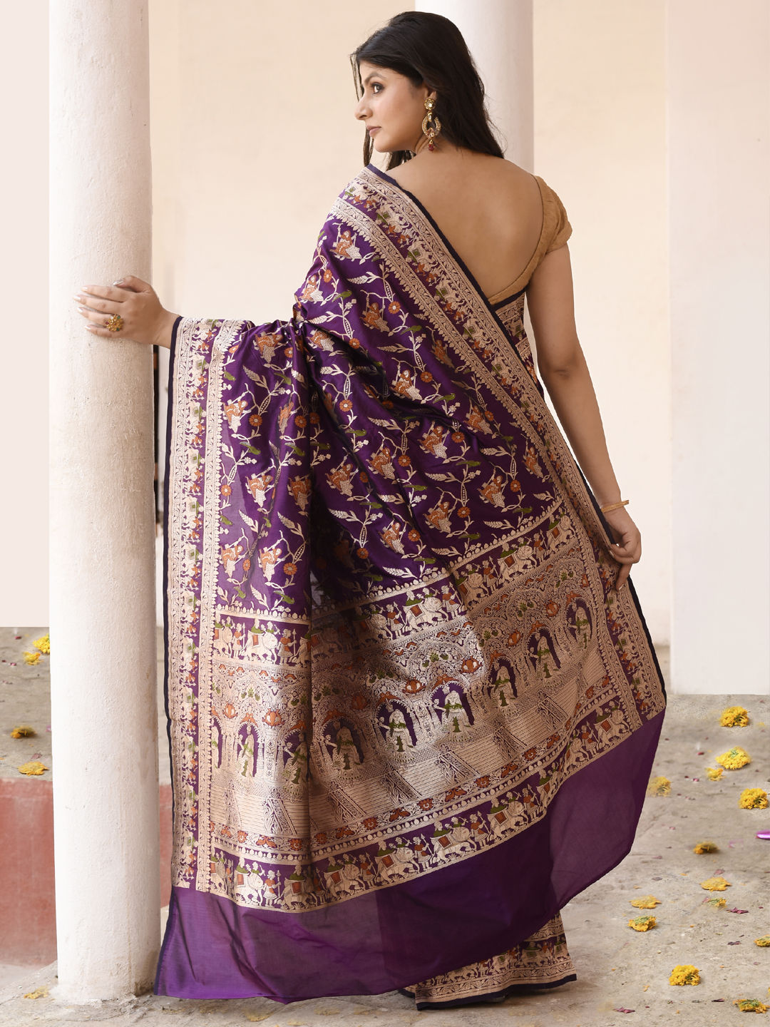 Tissue Traditional Saree in Gold with Zari work