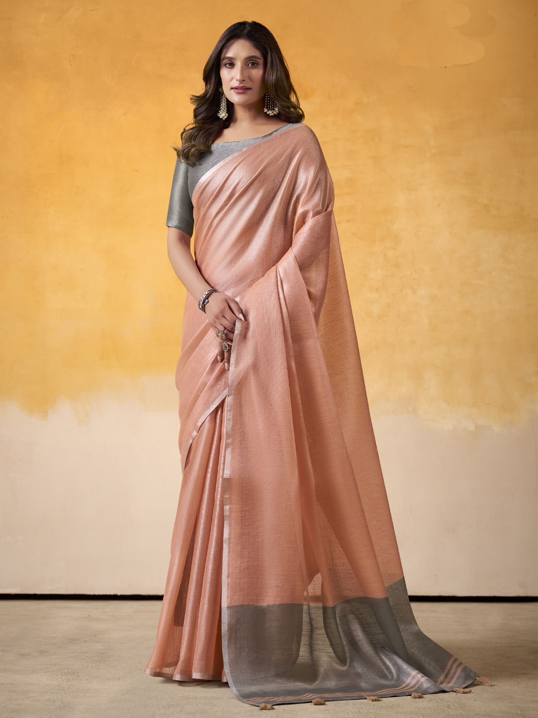 Tissue Traditional Saree in Beige and Brown with Weaving work