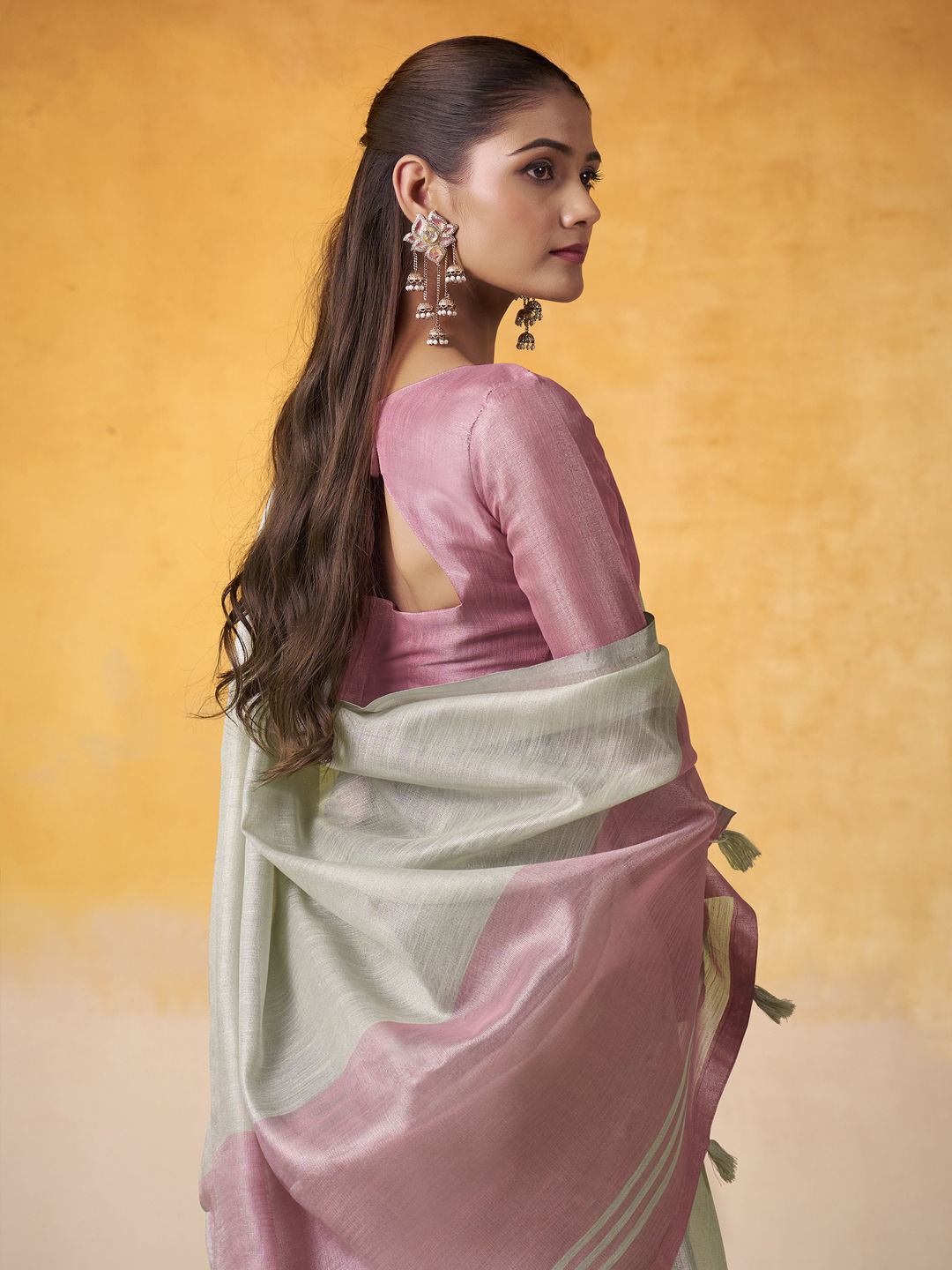 Tissue Traditional Saree in Pink and Majenta with Weaving work