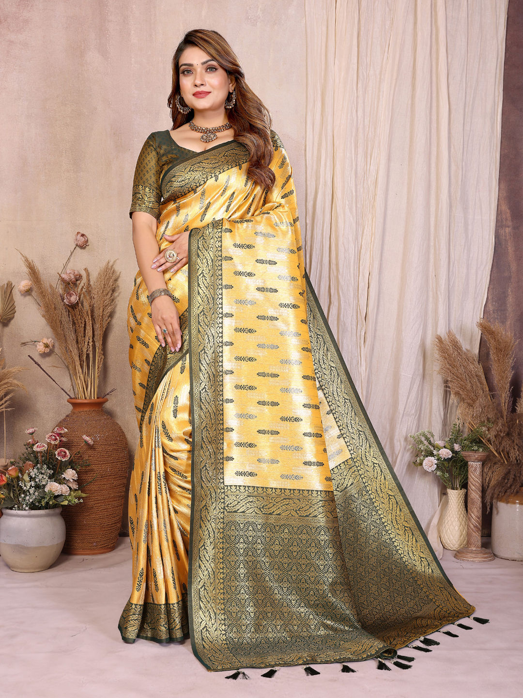 Tissue Traditional Saree in Green with Weaving work