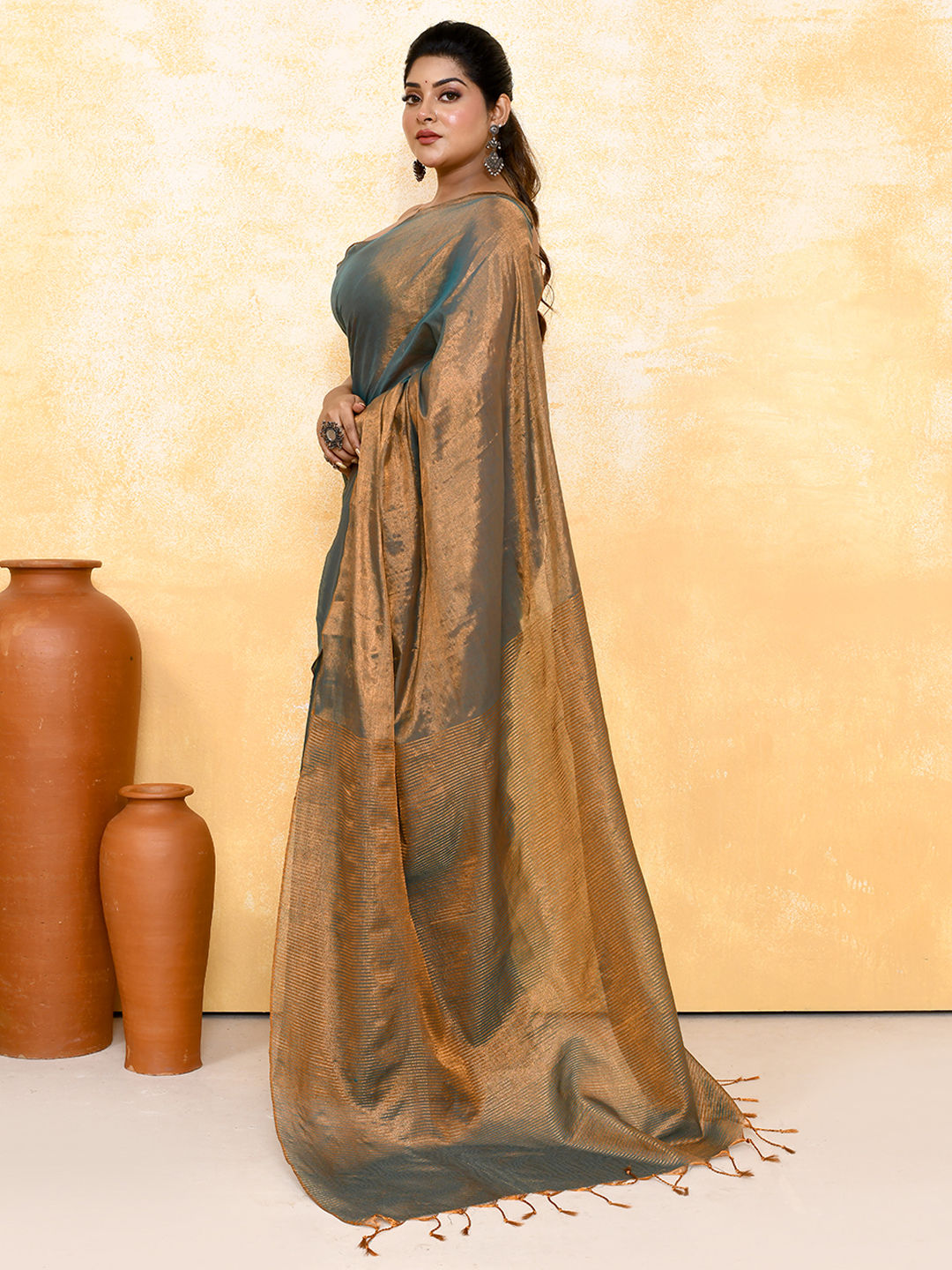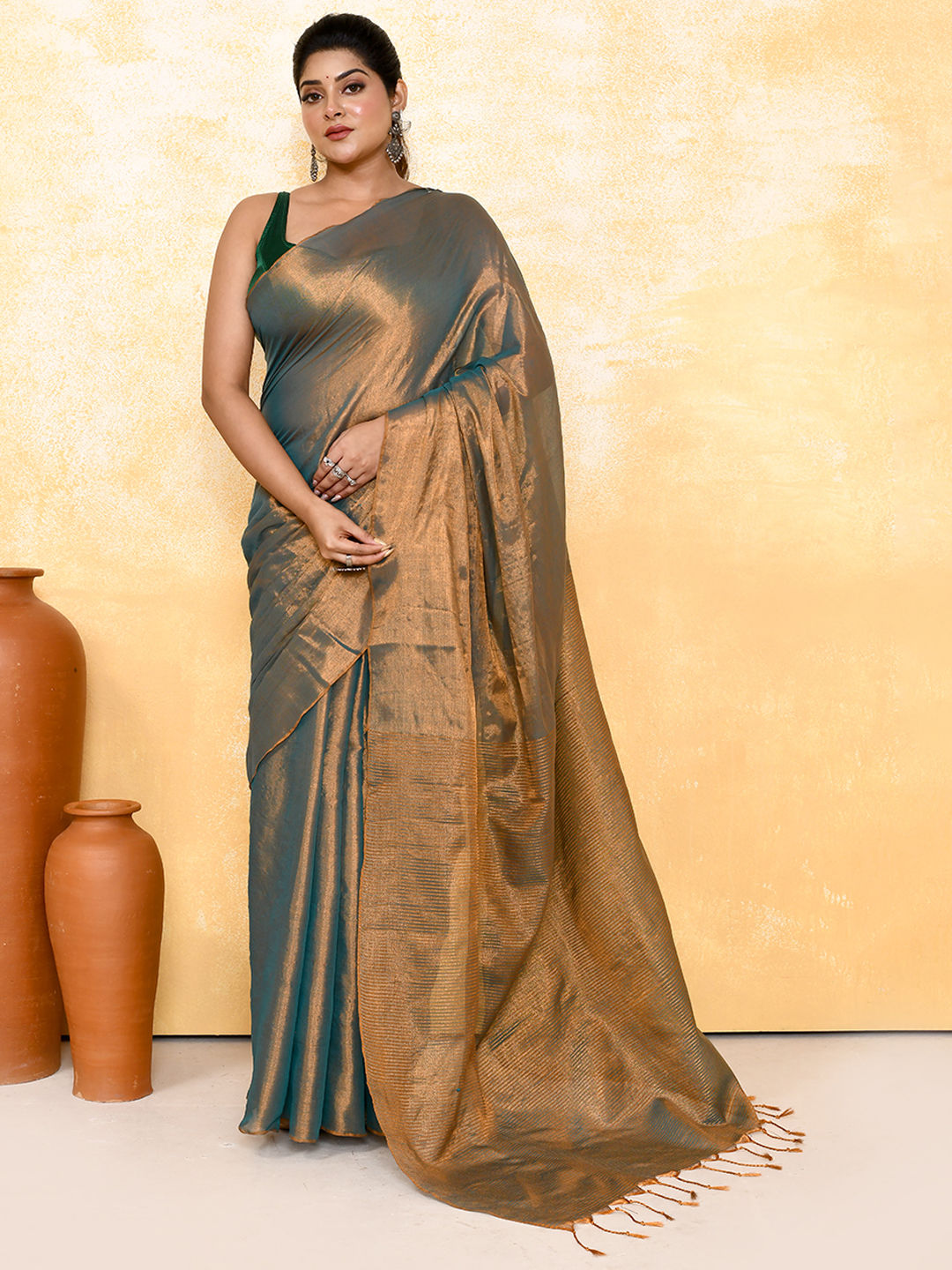 Gold, Green color Saree in Tissue fabric with Weaving work