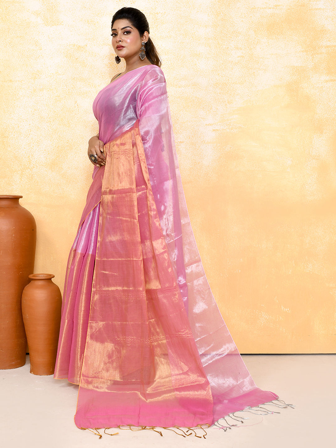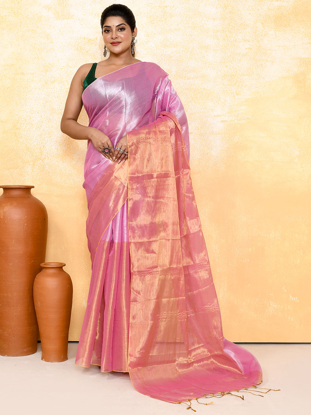 Pink and Majenta color Saree in Tissue fabric with Weaving work