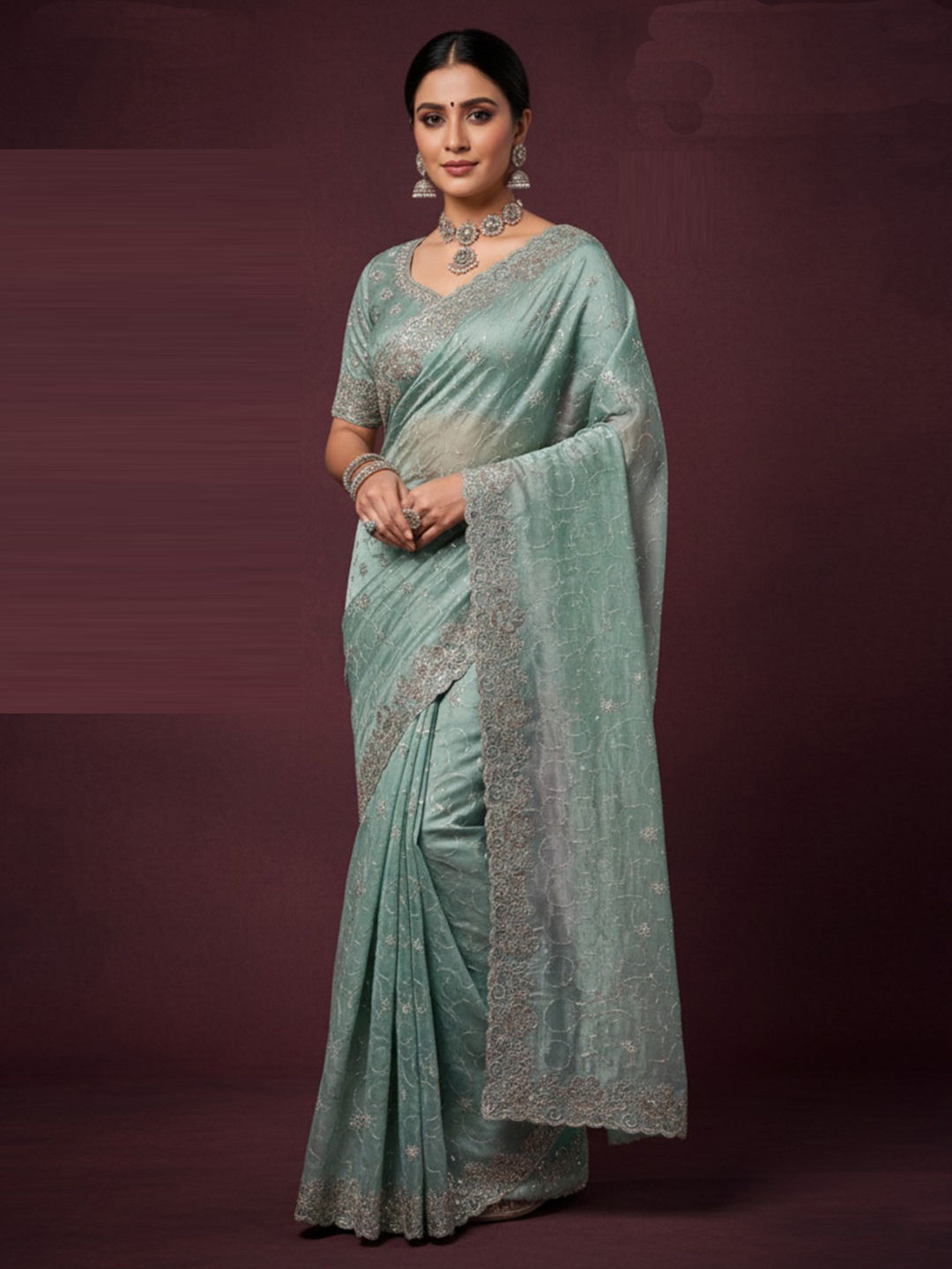 Blue color Saree in Tissue fabric with Embroidered, Sequence work
