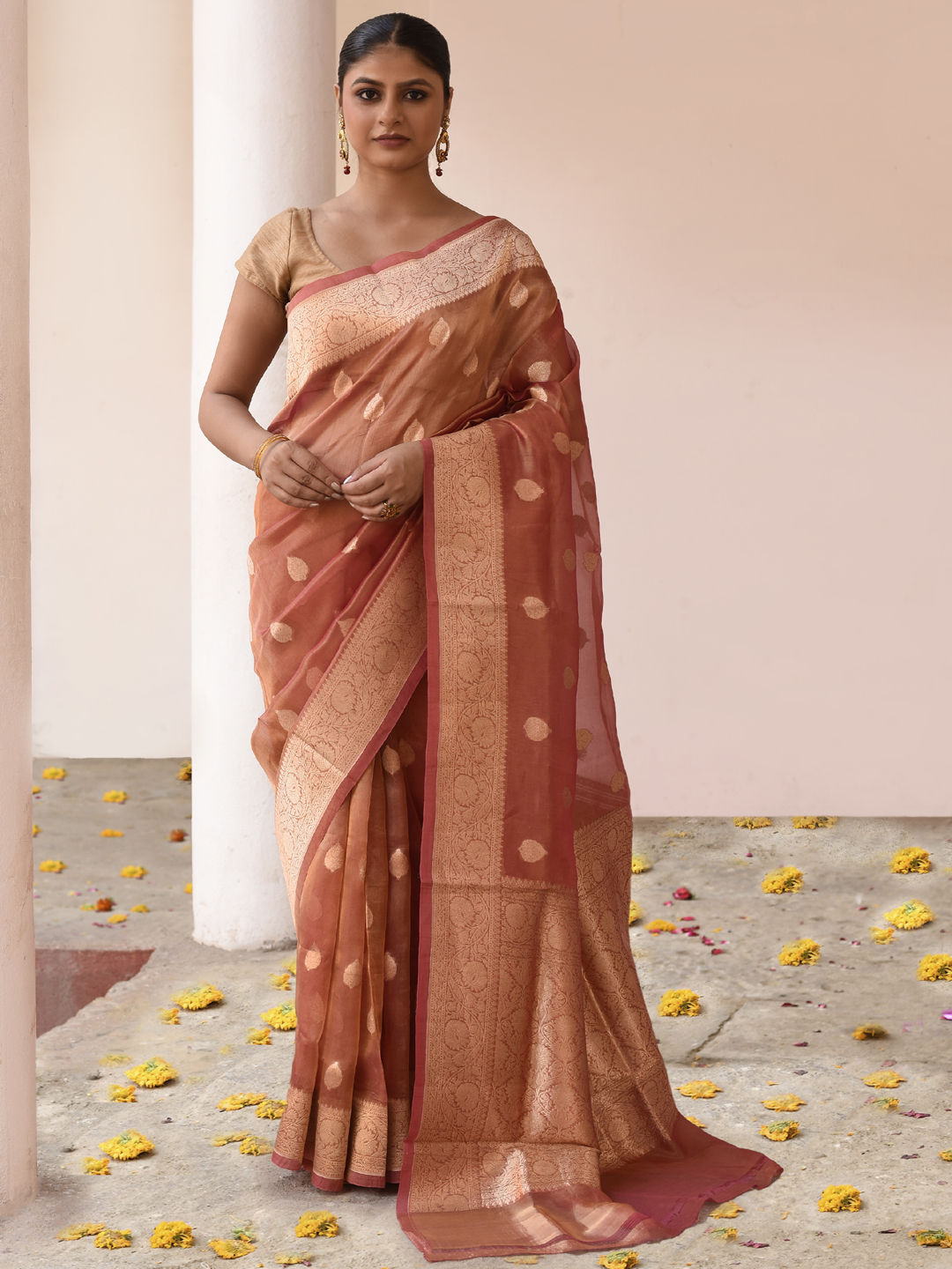 Banarasi Silk Traditional Saree in Red and Maroon with Zari work