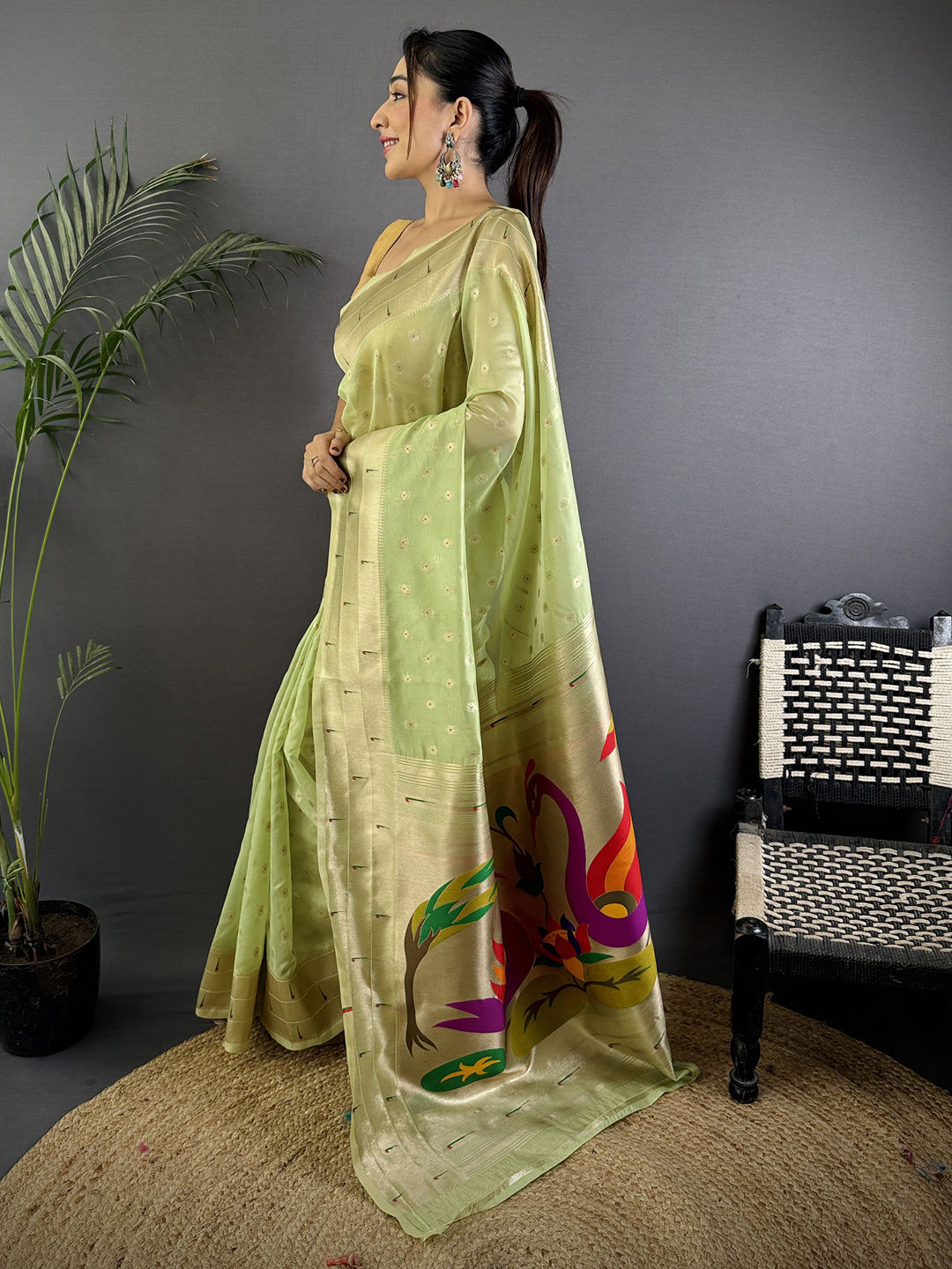 in Green with Weaving work