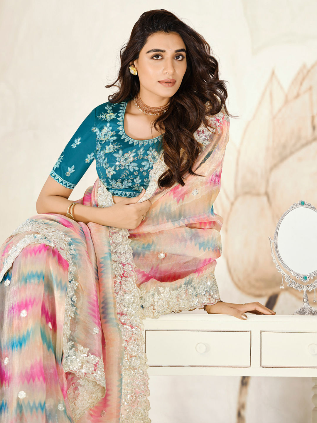 Multicolor color Saree in Tissue fabric with Embroidered, Printed, Sequence work