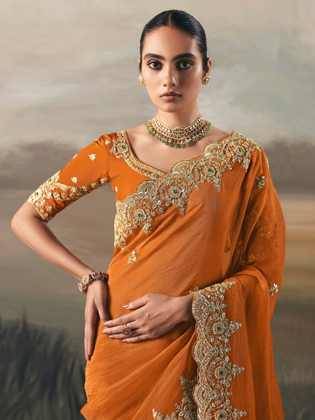 in Orange with Thread work