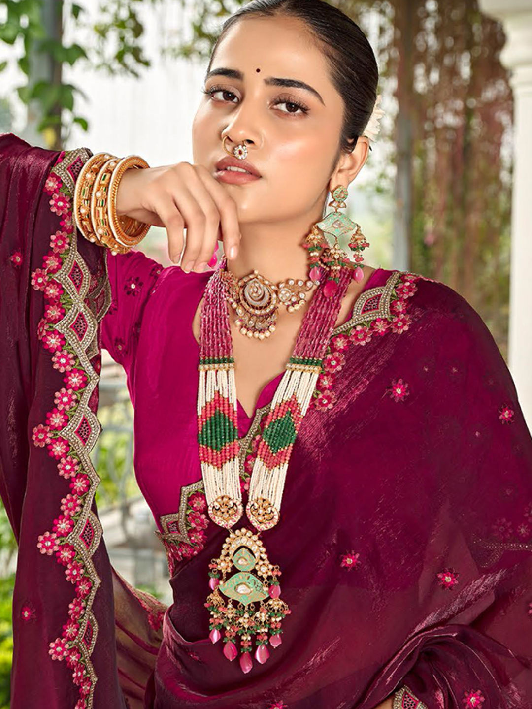 Pink and Majenta color Saree in Tissue fabric with Embroidered, Resham, Thread, Zari work
