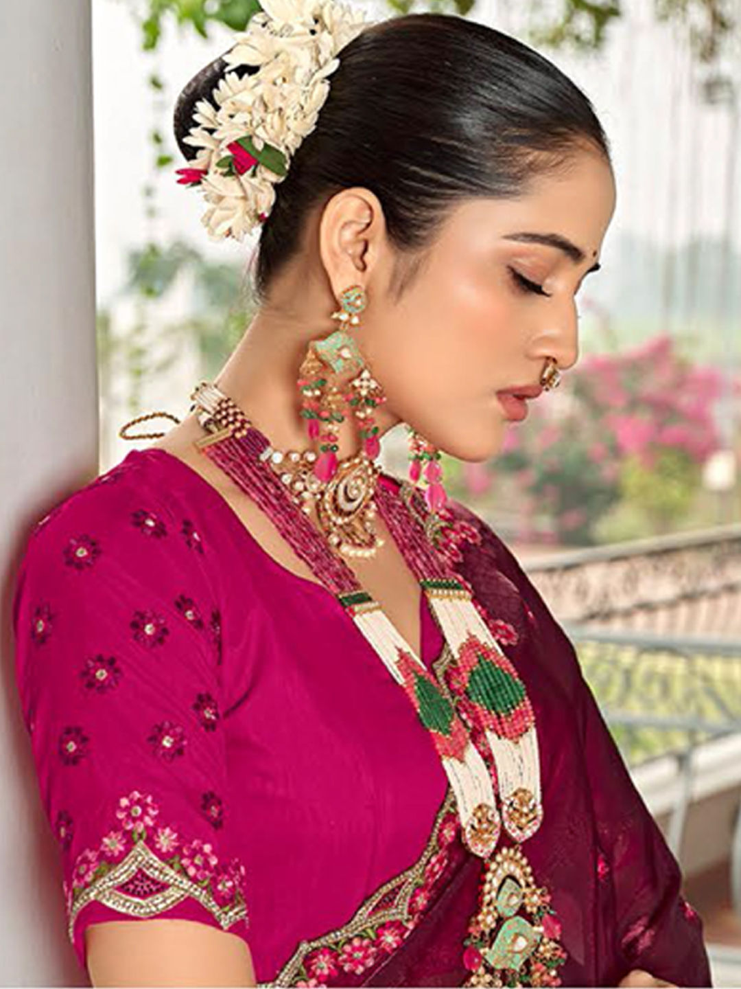 Silk Traditional Saree in Pink and Majenta with Thread work