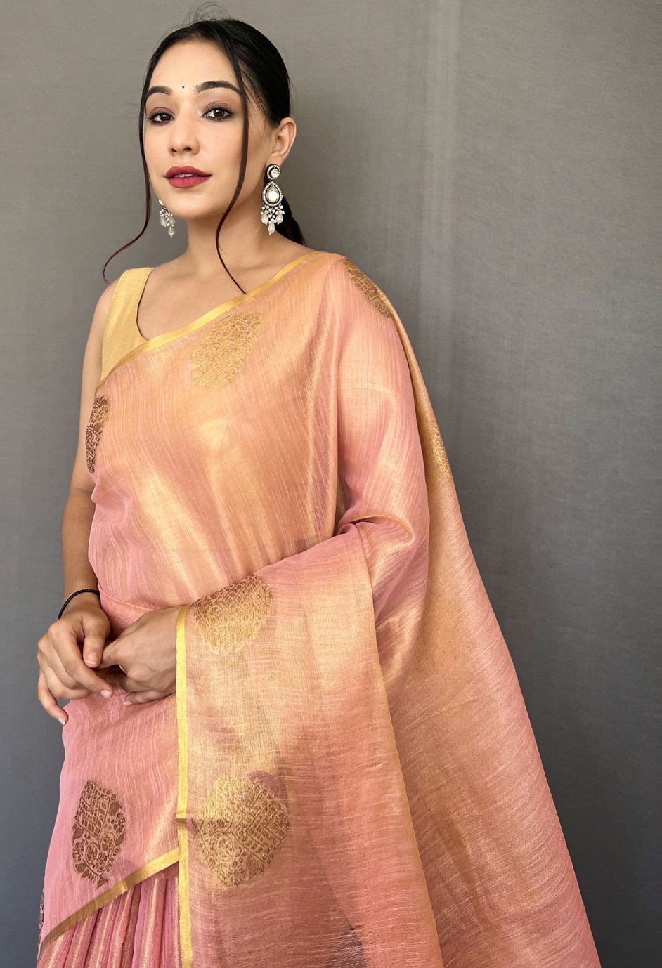 Pink and Majenta color Saree in Silk, Tissue fabric with Weaving work