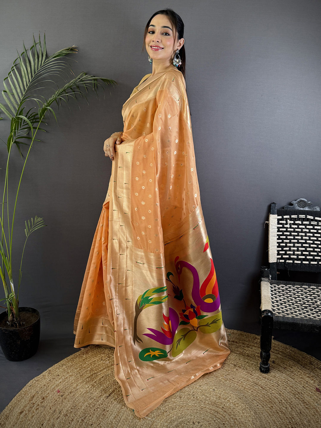 Pink and Majenta color Saree in Tissue fabric with Weaving work