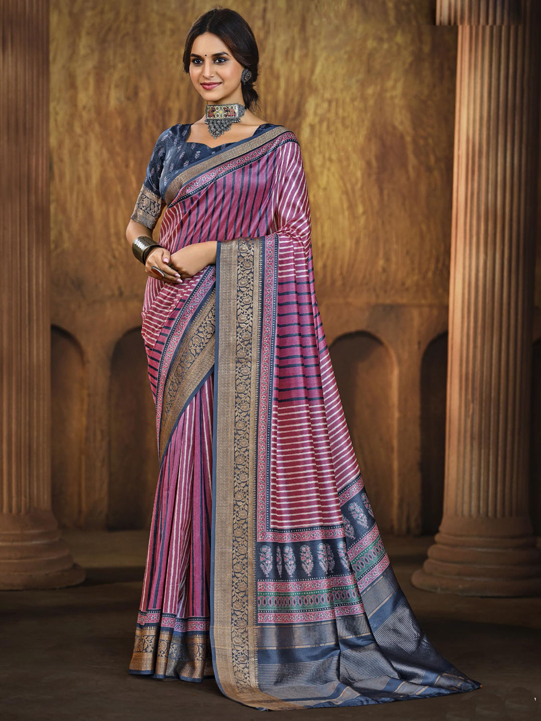 Pink and Majenta color Saree in Tissue fabric with Weaving work