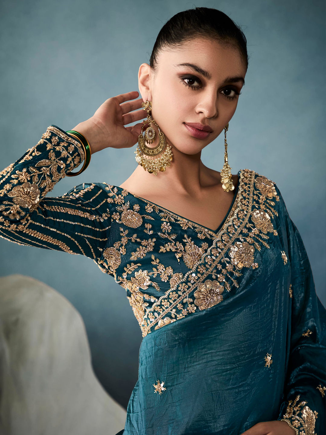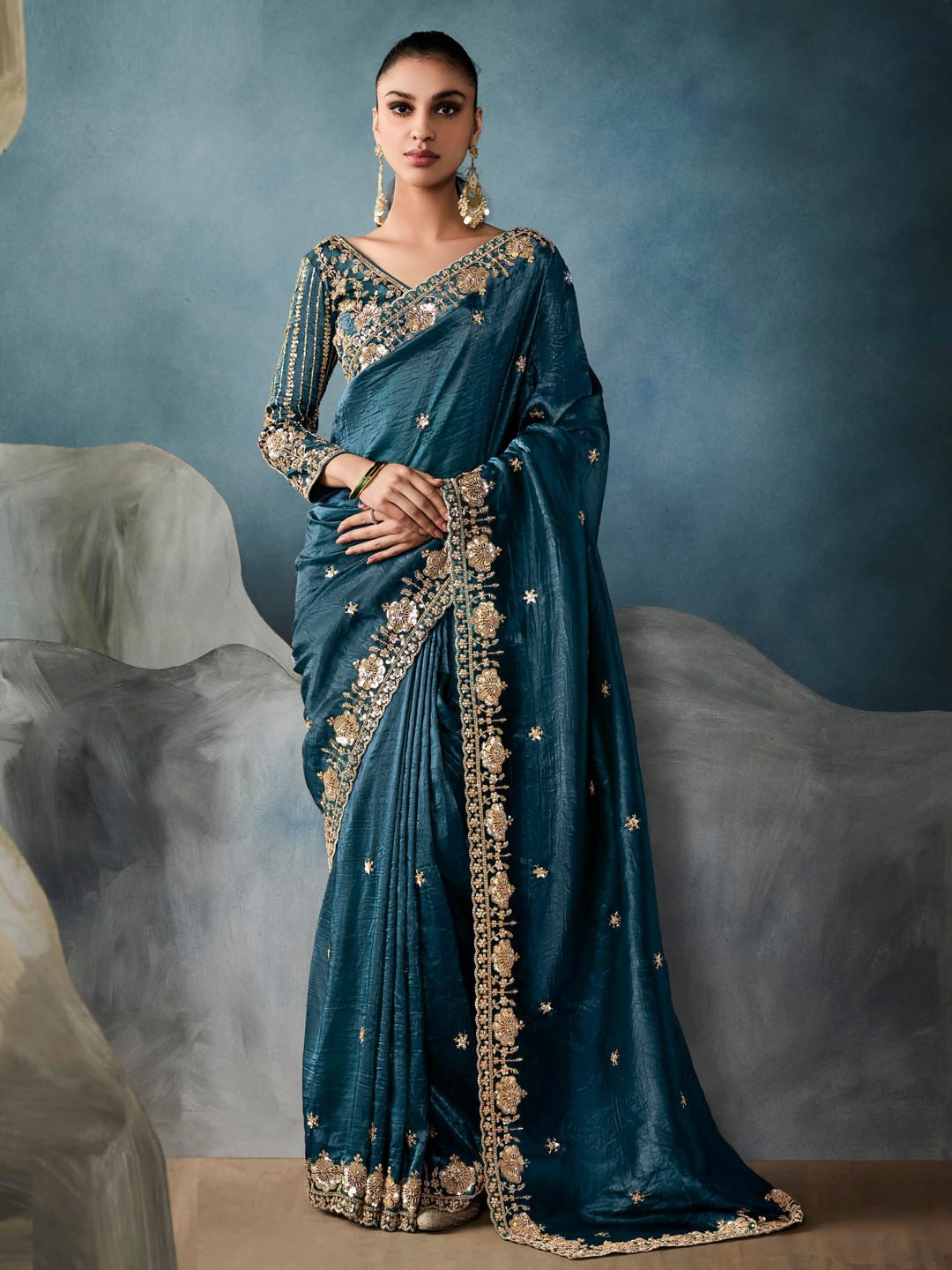 Purple and Violet color Saree in Tissue fabric with Embroidered, Sequence, Thread work