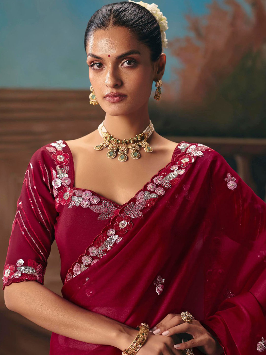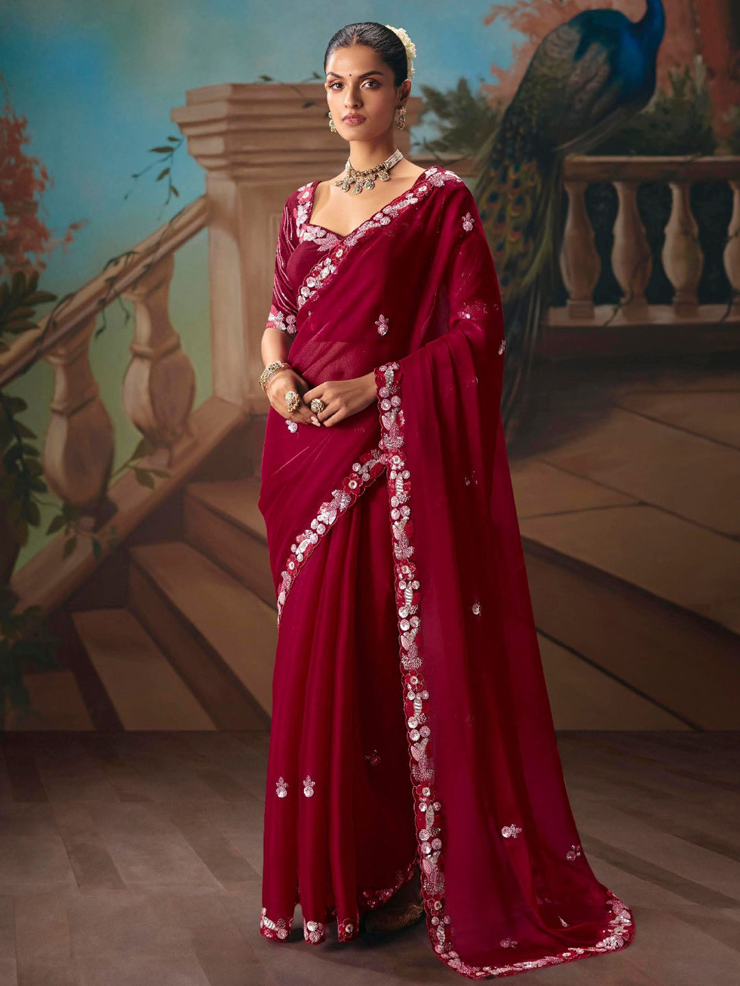 in Red and Maroon with Embroidered work