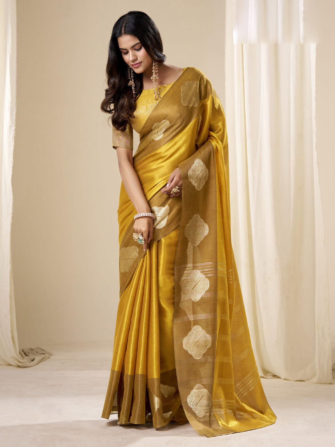 Tissue Traditional Saree in Beige and Brown with Weaving work