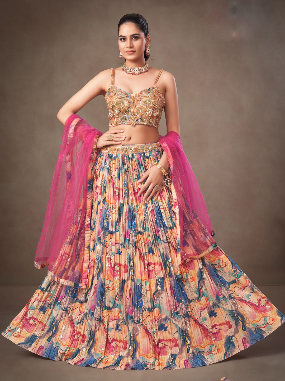 Tissue Engagement Lehenga in Multicolor with Printed work