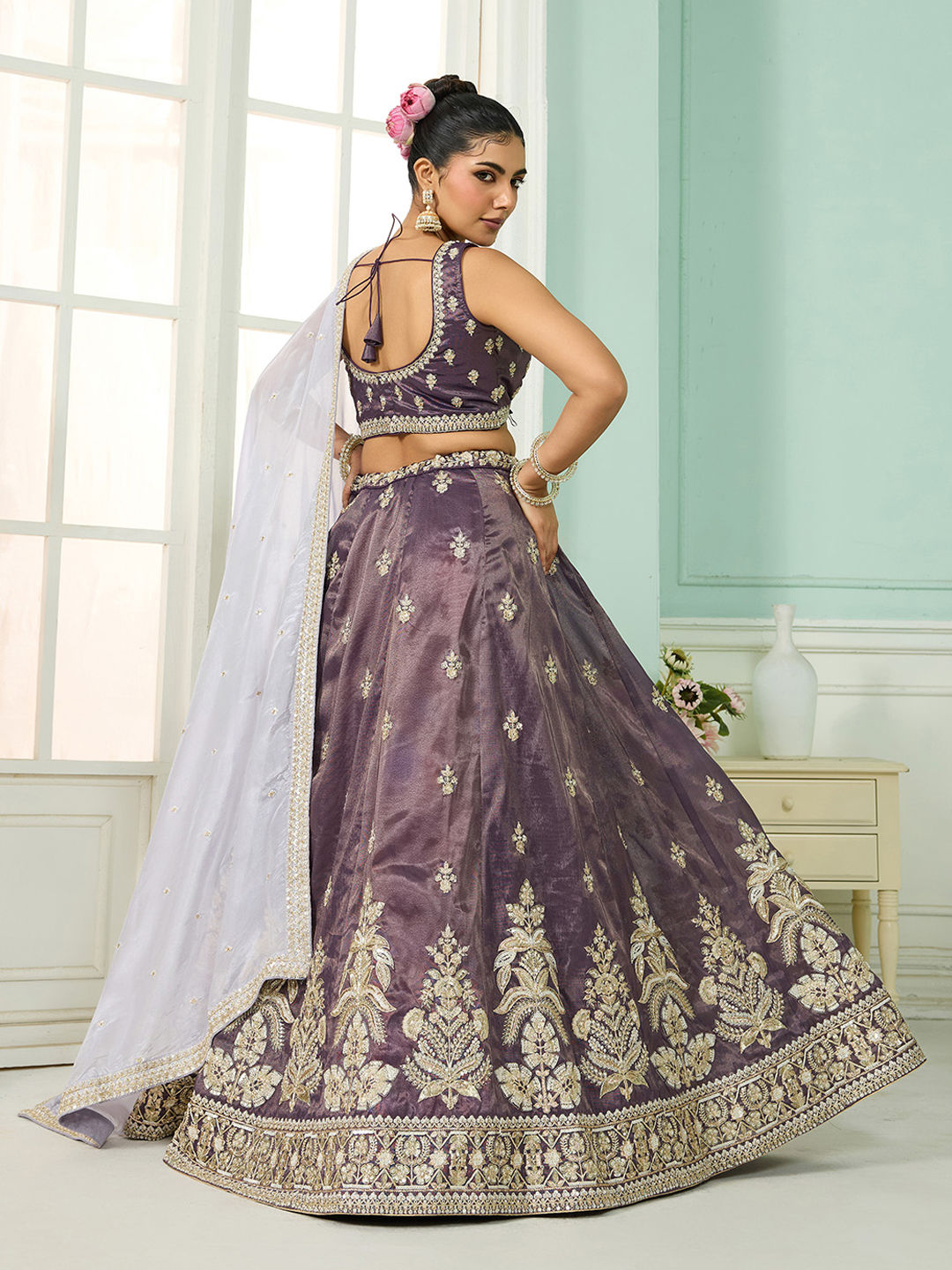 Tissue Wedding Lehenga in Purple and Violet with Thread work