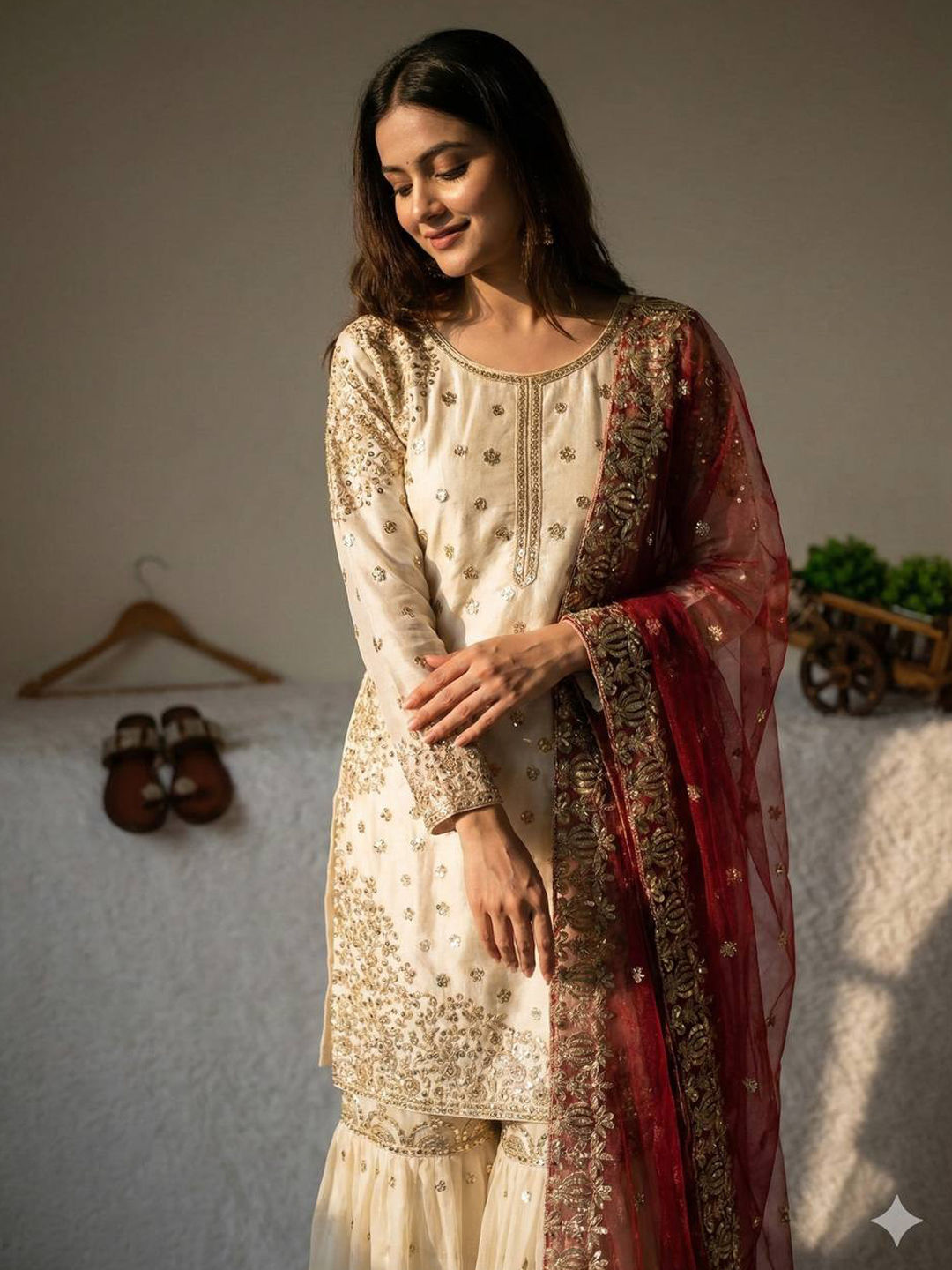 in White and Off White with Thread work