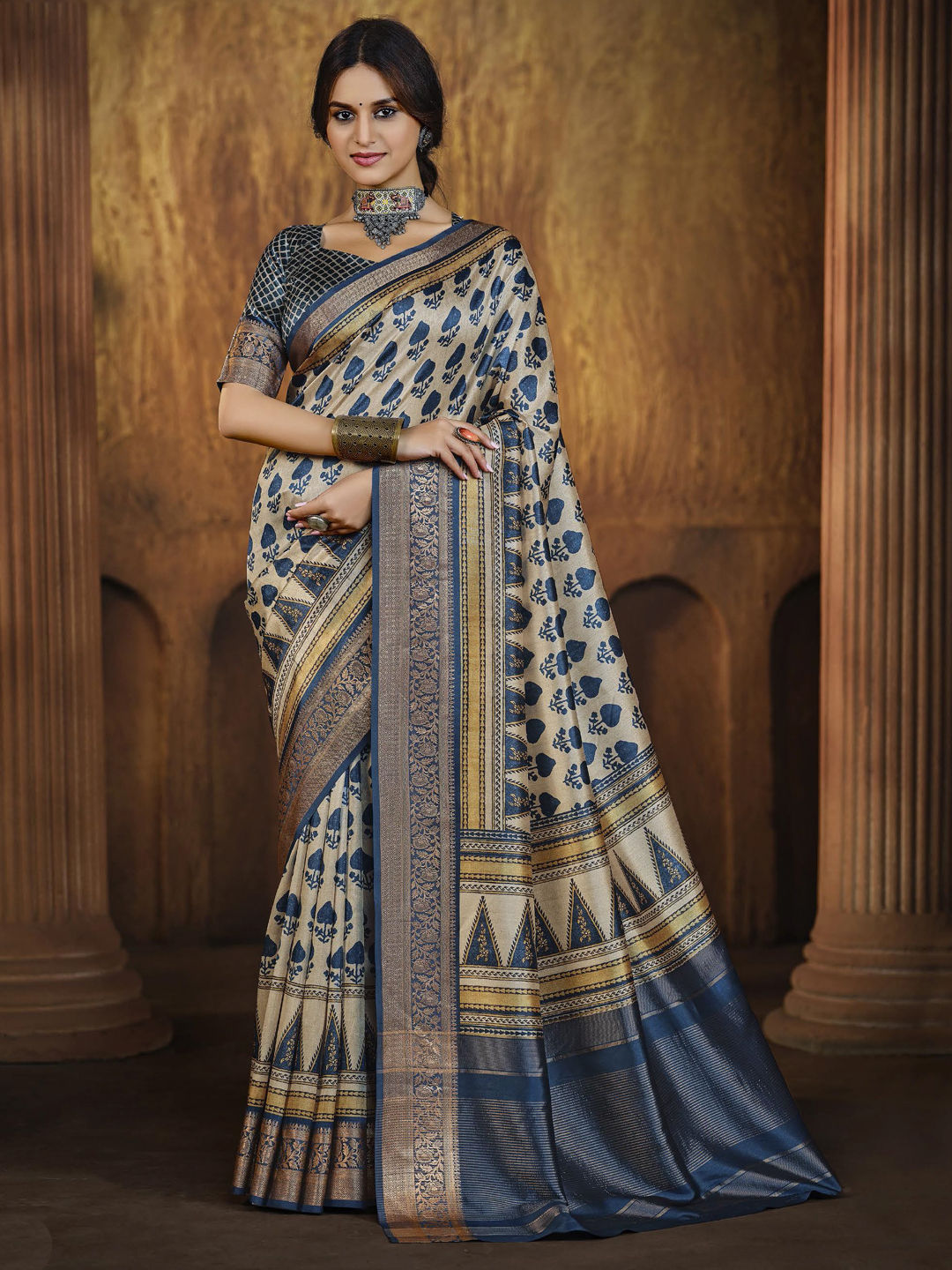 Tissue Traditional Saree in Blue with Weaving work