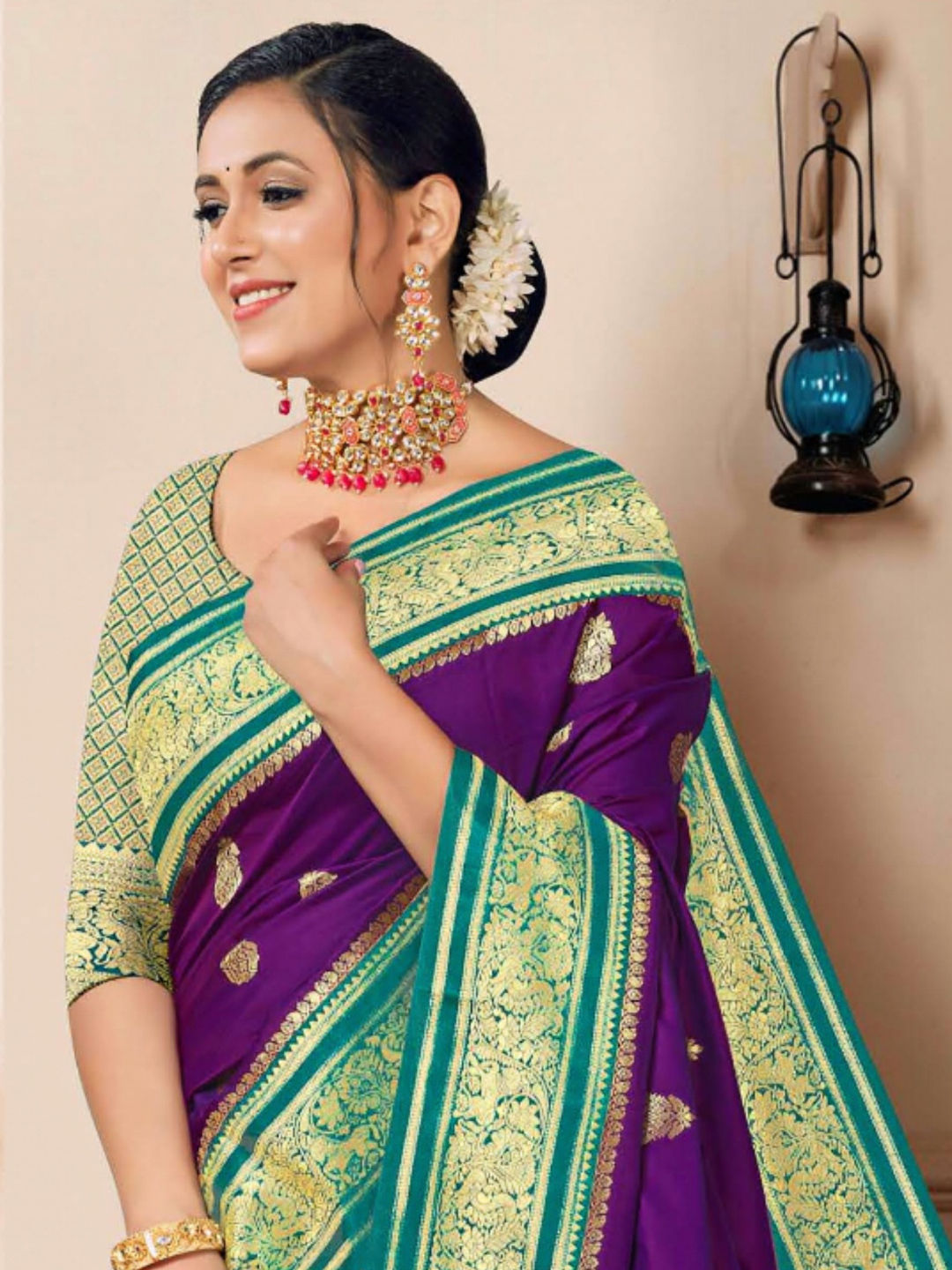 Tissue Festive Saree in Purple and Violet with Weaving work