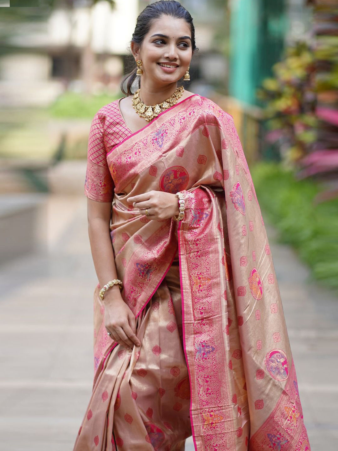 Tissue Festive Saree in Pink and Majenta with Weaving work