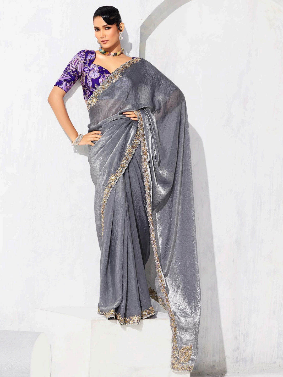 in Black and Grey with Zari work