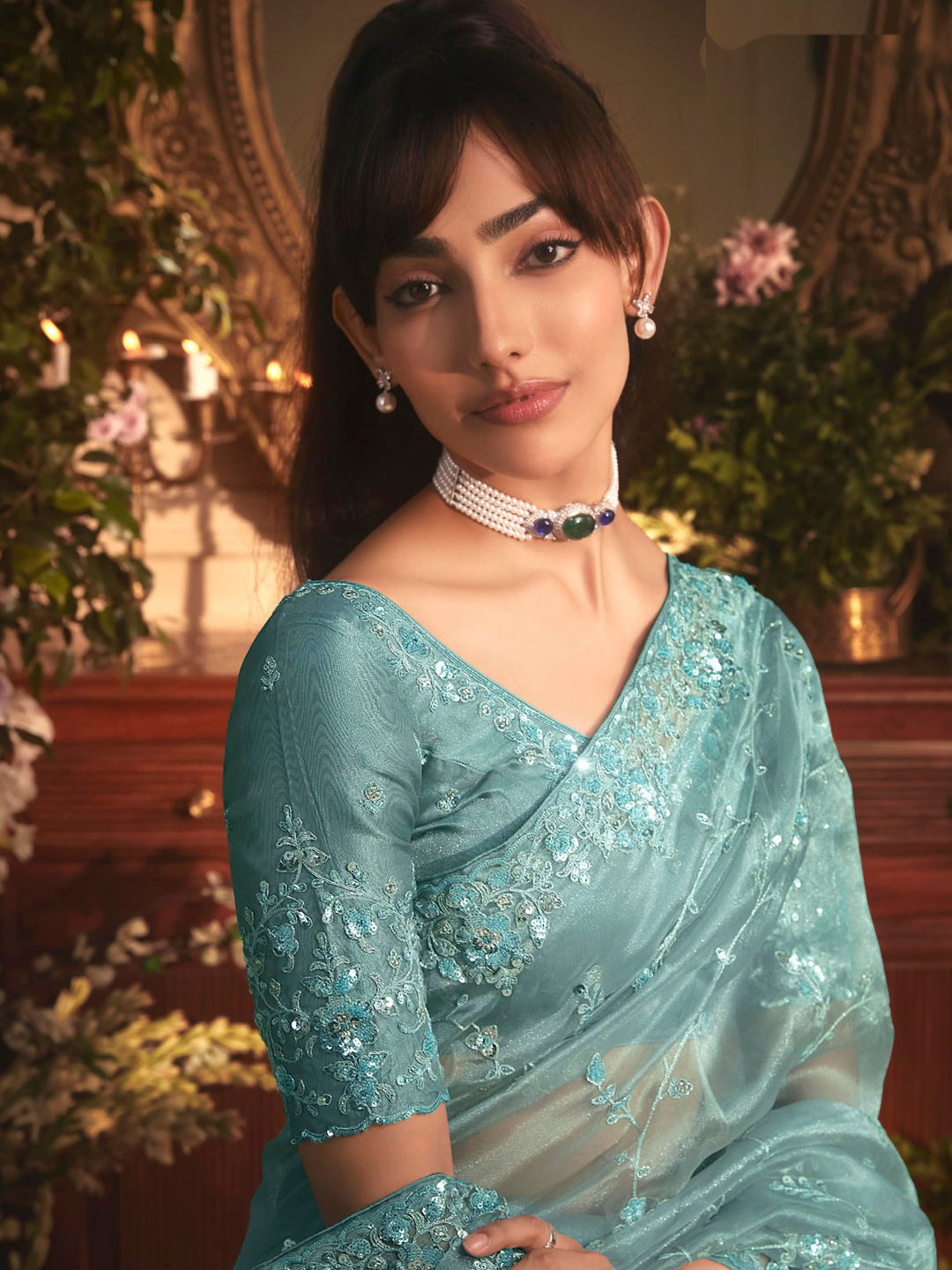 Blue color Saree in Tissue fabric with Embroidered, Sequence work