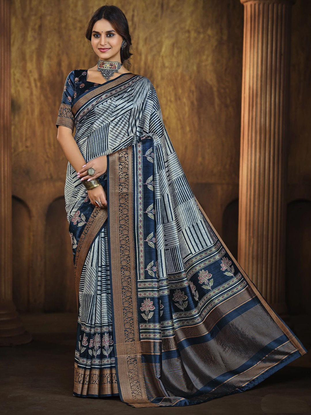 Black and Grey, Blue color Saree in Tissue fabric with Weaving work