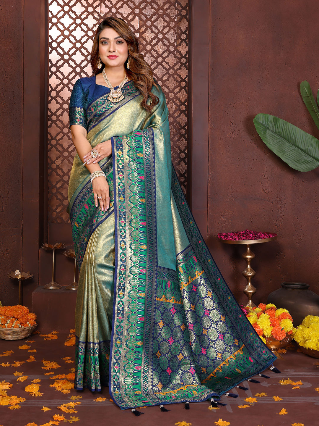 Blue color Saree in Banarasi Silk, Tissue fabric with Weaving work
